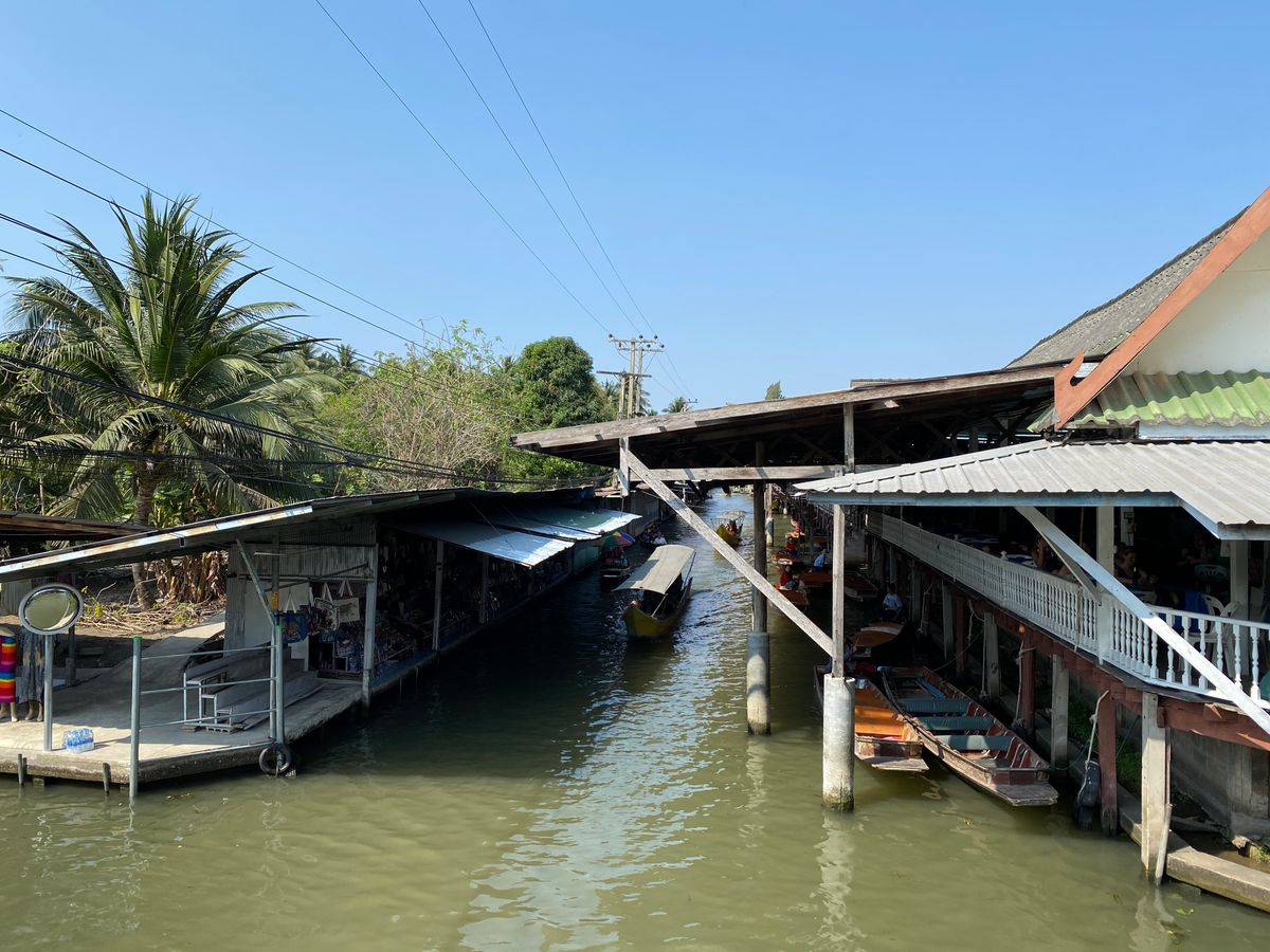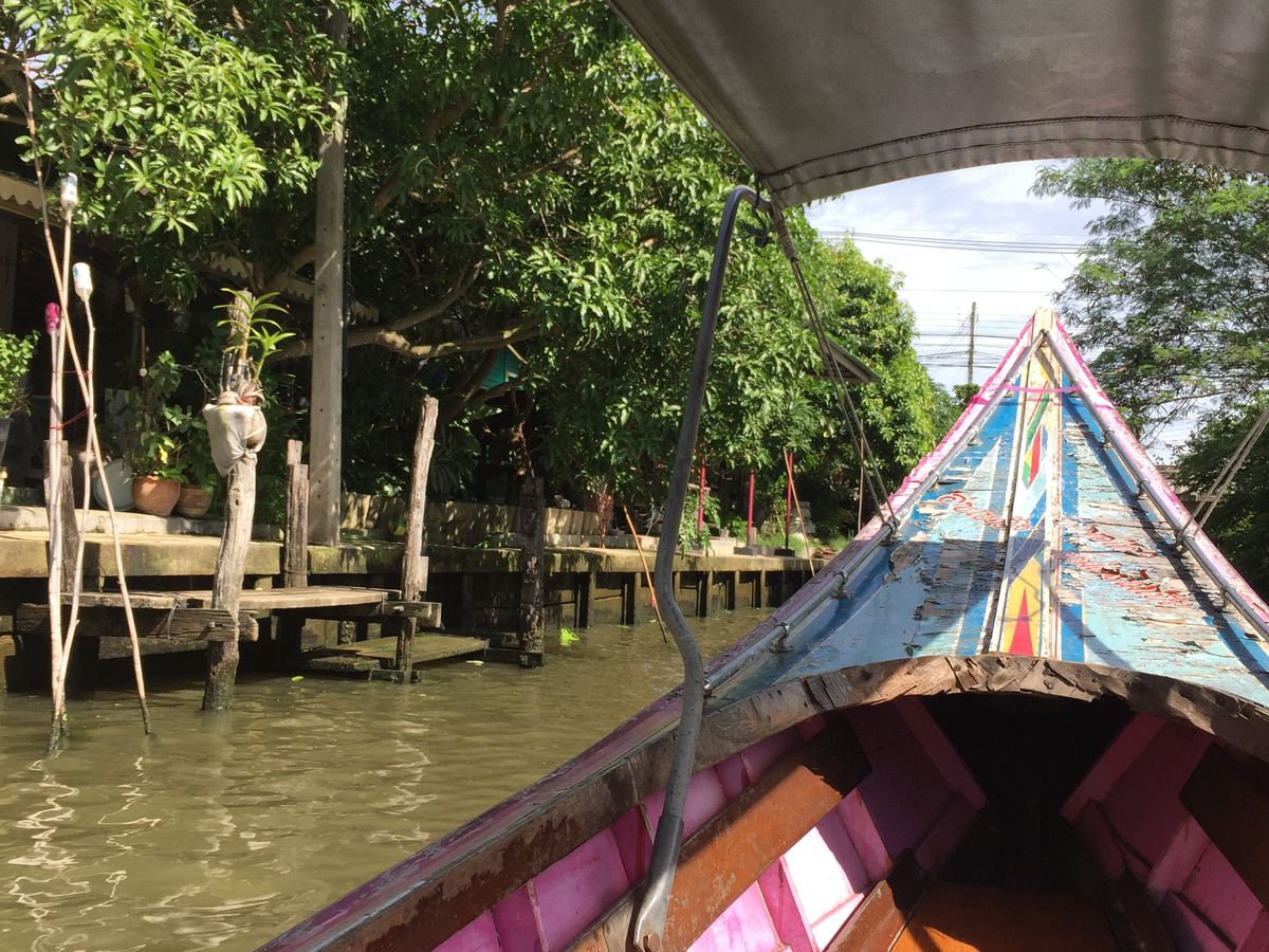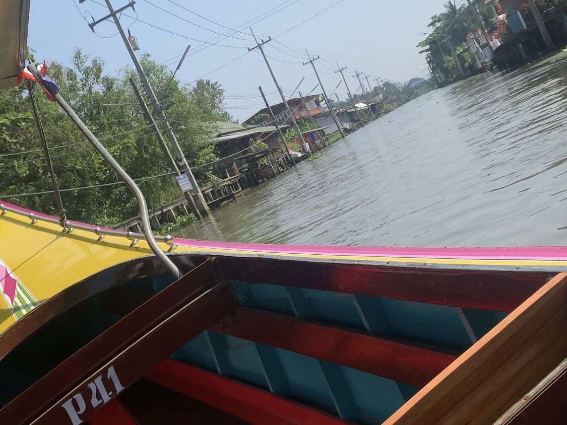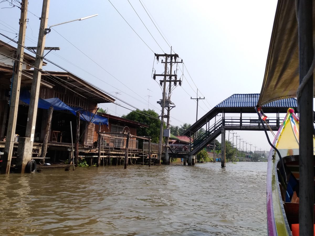 水上マーケット自体は事前に聞いていた通り、完全に観光客向けの作られた場所で、売られている商品もバンコク中心部の相場よりも割高。特に珍しいものもなく、正直買い物をする場所ではありません。ただ、市場をボートでゆっくりとまわるという経験はなかなかに楽しくこれはこれで来たかいがありました。また、高速ボートで颯爽と水路を走り回るのはとにかく痛快で楽しかったです。水上マーケット自体よりも楽しかったかも 笑 水路を走り抜けた両側には一般家庭の家々を見ることができ、水路そばに暮らす人々の営みを垣間見れたのがとくに印象的でした。日本にも柳川観光など似たようなものはありますが、それとはまったく違う世界を体感することができます。