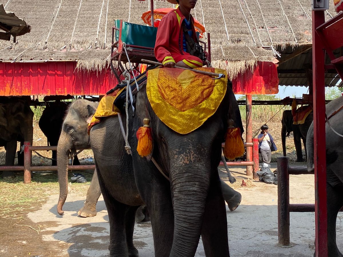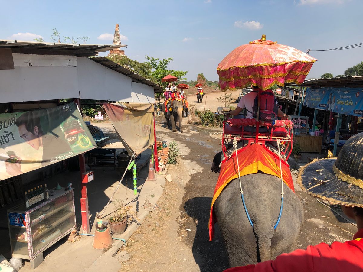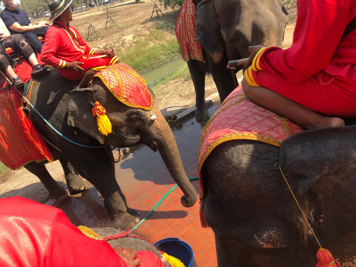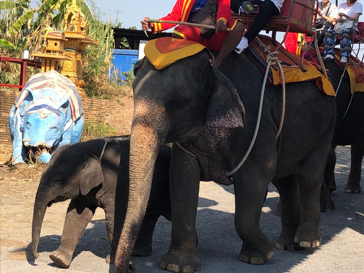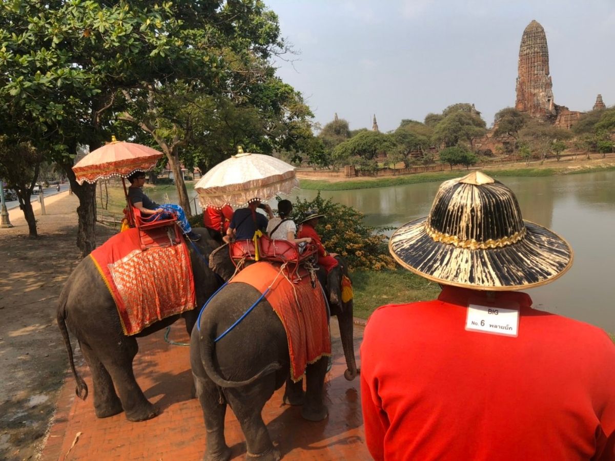 象に乗りたくて、アユタヤ遺跡へも行けるこのツアーに参加しました。早朝に宿泊先のホテルに迎えに来てくださり、卒業旅行の大学生のグループと私たち夫婦の2組で参加。ガイドさんが行く先々で写真を撮ってくださいました。メークイン市場では、電車がよく見える場所や撮影する向きまでも教えてくれました。ソイブーンのプーパッポンカレーもお腹いっぱいの量でとても美味しかったです。水上マーケットは希望者は、追加料金で手漕ぎボートに乗って船上で買い物体験できますが、私たち2組は追加料金はやめて、ジェットエンジンの船に乗りました。凄いスピードで楽しかったのですが、やっぱり手漕ぎボートで買い物の雰囲気を体験したかったかなぁ、と後で思いました。でも船着場にいる船のお店から買い物はできます。ココナッツアイスと揚げバナナが美味しかったです。ココナッツファームもココナッツオイルやボディークリームを購入できて良かったです。アユタヤ遺跡は仏像の頭より下に自分達の頭がくるように写真とるのがルールだそうです。私たちのツアーではなく、個人で来た日本人の人が寝そべって涅槃豚と同じポーズで写真を撮ろうとして、注意されていました。同じ日本人として恥ずかしかったので、ルールやマナーは行く前に確認しておくべきだと思いました。