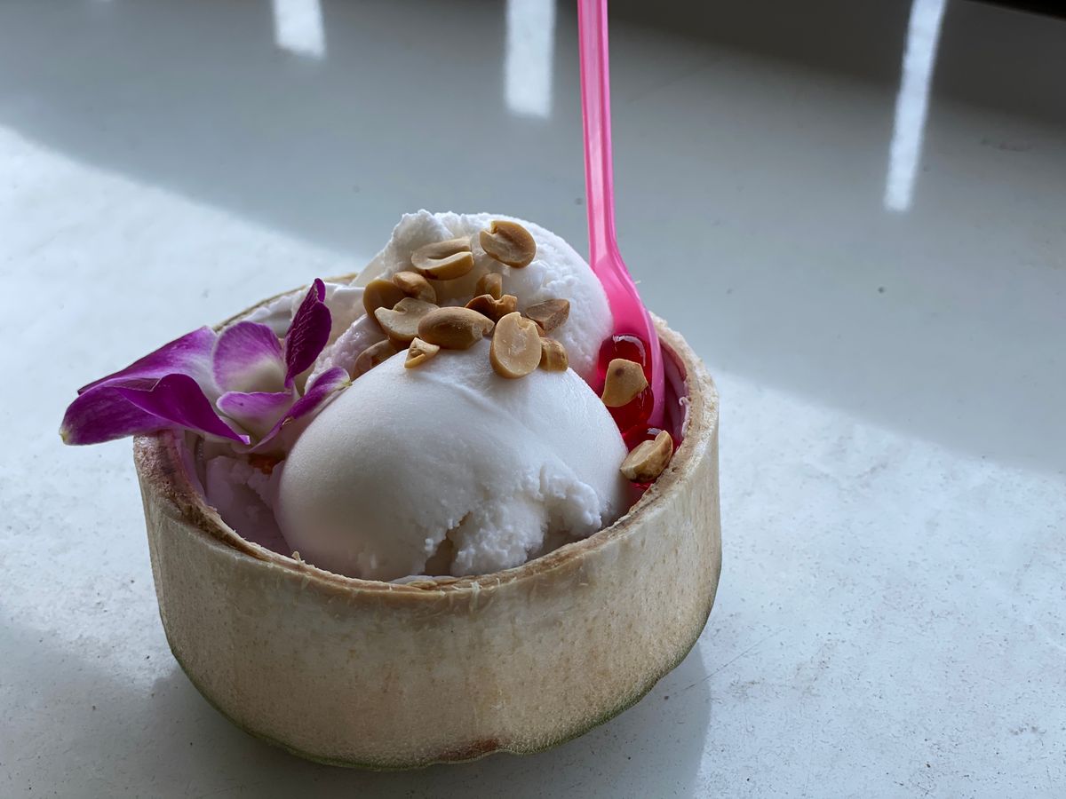ナッツアイスが美味しかったです!半日のツアーの最後にお昼ご飯をいただきました。トムヤムクンか普通の麺料理かの2種から選択できました。味は美味しかったです。半日でこの価格なら良いツアーだと思います!