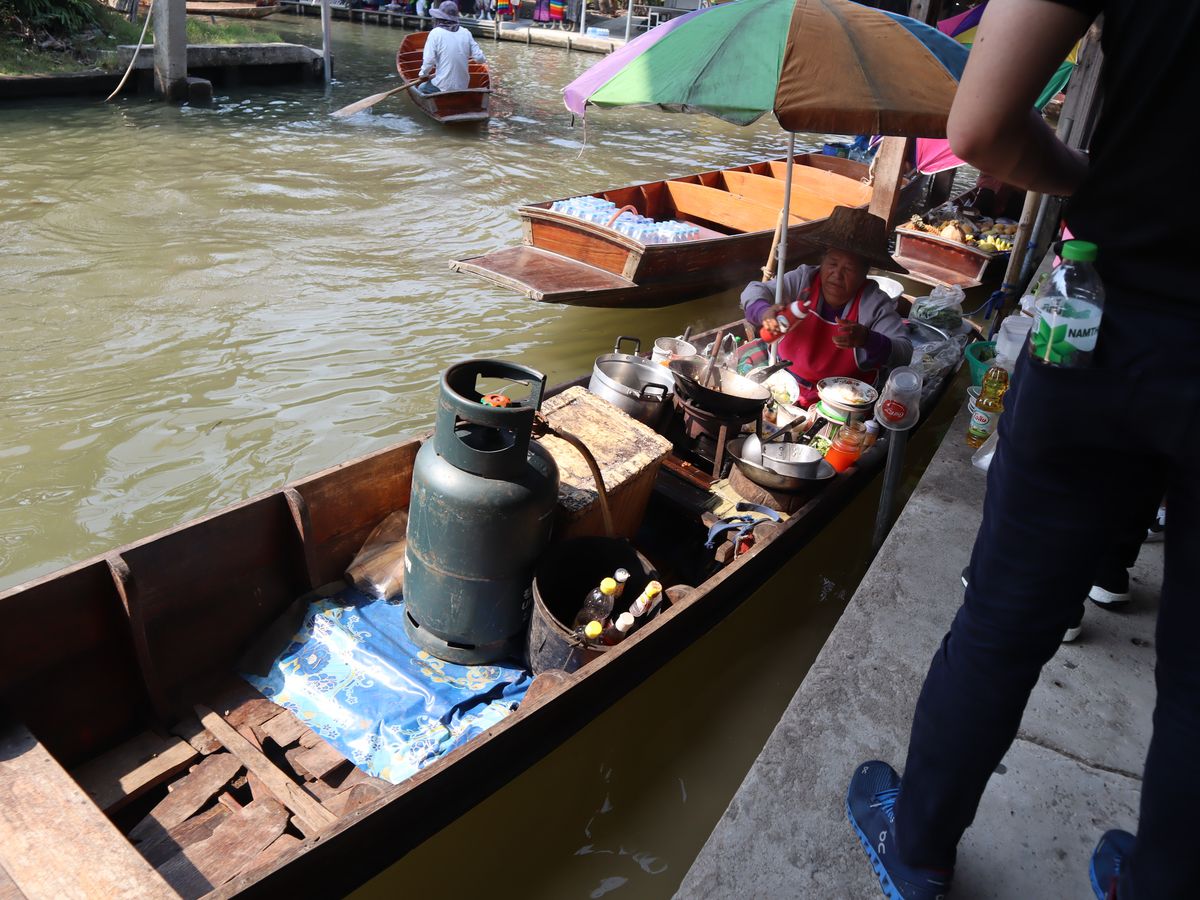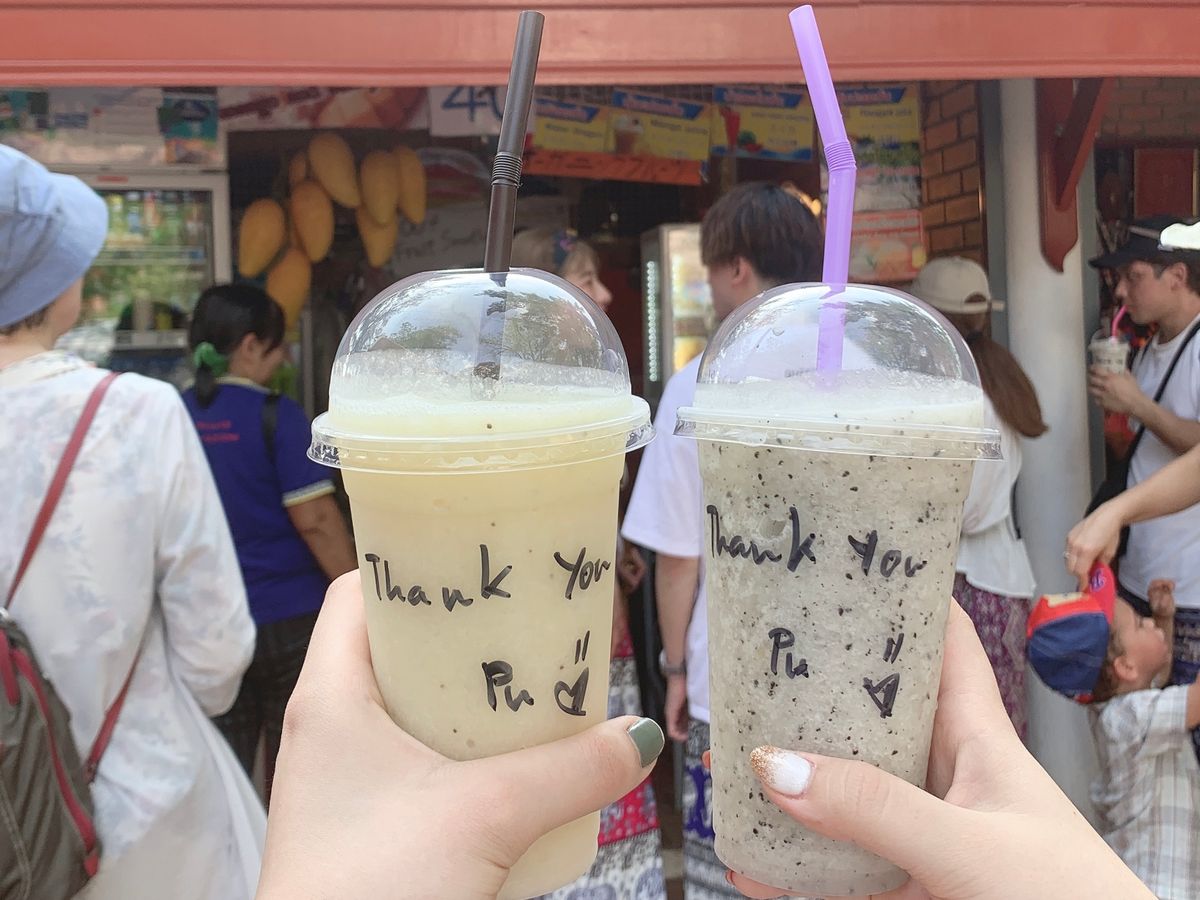 特に、自分達で行ったら確実にたべていないであろう、1本5バーツの豚の串焼きや、水上マーケットで、船で売られてるタイのラーメンは、店の周りに虫が飛んでいたりと少し怖かったですが、味は美味しくこれこそ海外の醍醐味ではないかと思うほど満足しています。