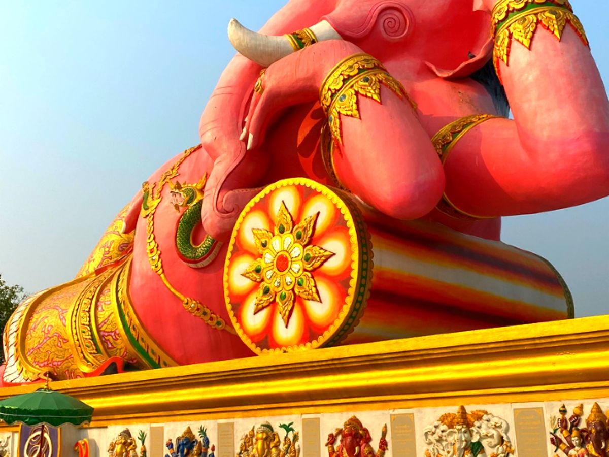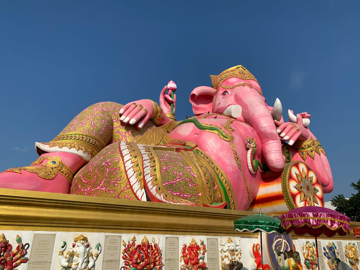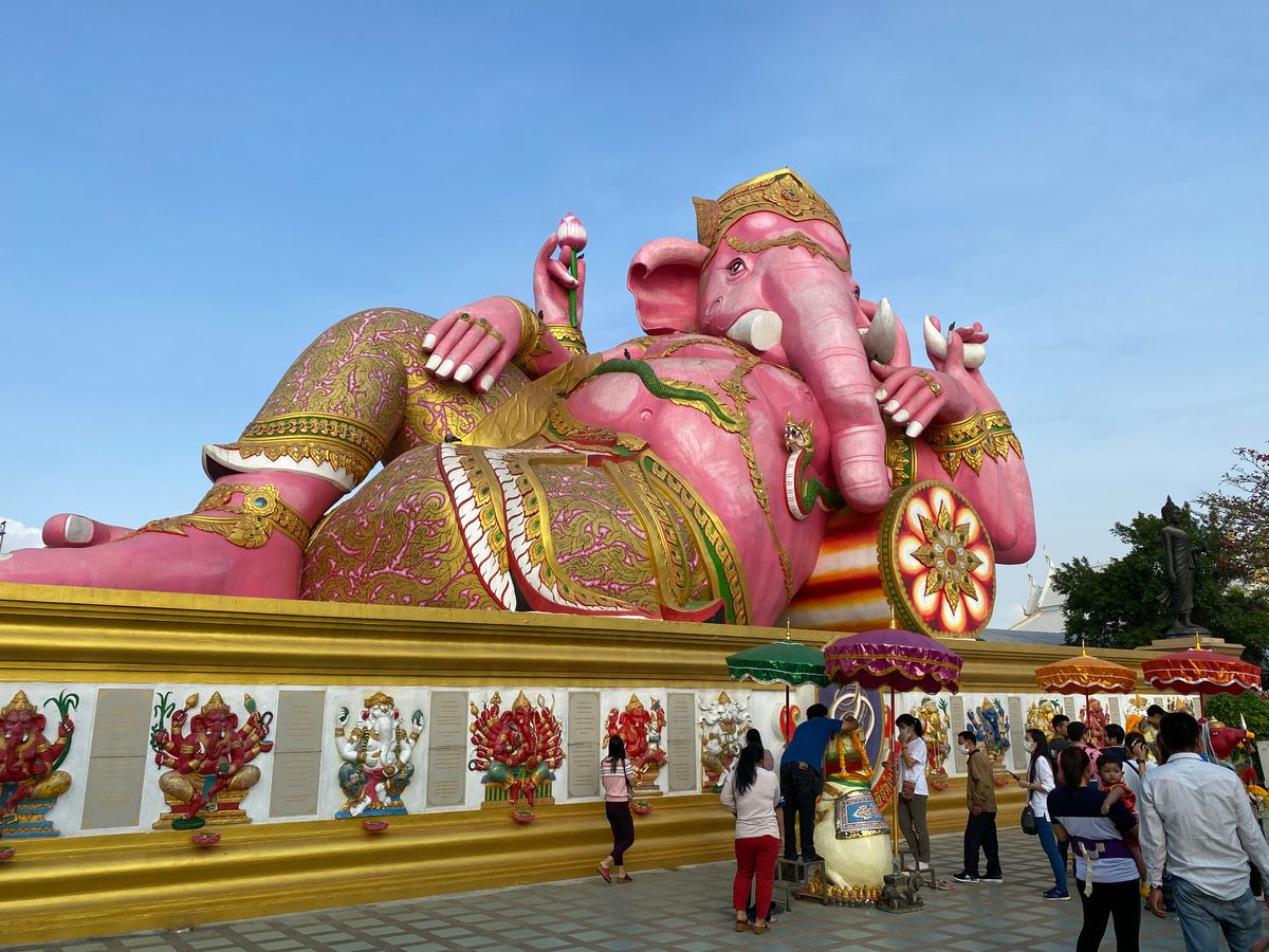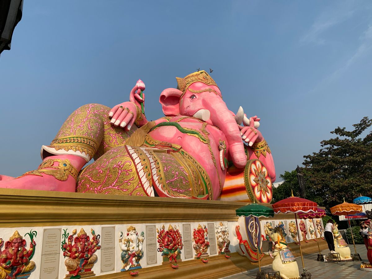 姉と2人で参加。ピンクのガネーシャ、ワットパクナム、ナイトマーケットに行きたく申し込みました。旅の他の日はスパ三昧とアフタヌーンティーでゆっくり過ごす!と決めていたので観光は1日で終わらせる為にこのツアーにしました。バンヤンツリーに宿泊し、朝6時20分にツアーの方が迎えに来てくれました。前日ホテルにお願いして朝食をお弁当にしてもらっていたので、それを受け取りワゴン車に乗って集合場所へ。その後観光用のバスに乗り換え出発!出発してすぐにタイパンツが配られます。早速履いてる方もいましたが、サラッとして楽チンな履き心地で嬉しいギフトでした!一ヶ所一ヶ所の観光時間も丁度よかったです。移動の間は寝れるので、前日遅くまで起きていた私たちにはとても助かりました(笑)海外で移動中に安心して寝れるのも日本人向けツアーだからこそ!自分達で移動だと常に気を張っていないといけないので、そこを考えるととてもよいですね!元々観光は姉が行きたがっており、私は付き添いくらいの感覚だったのですが実物を目の当たりにすると感動しました。