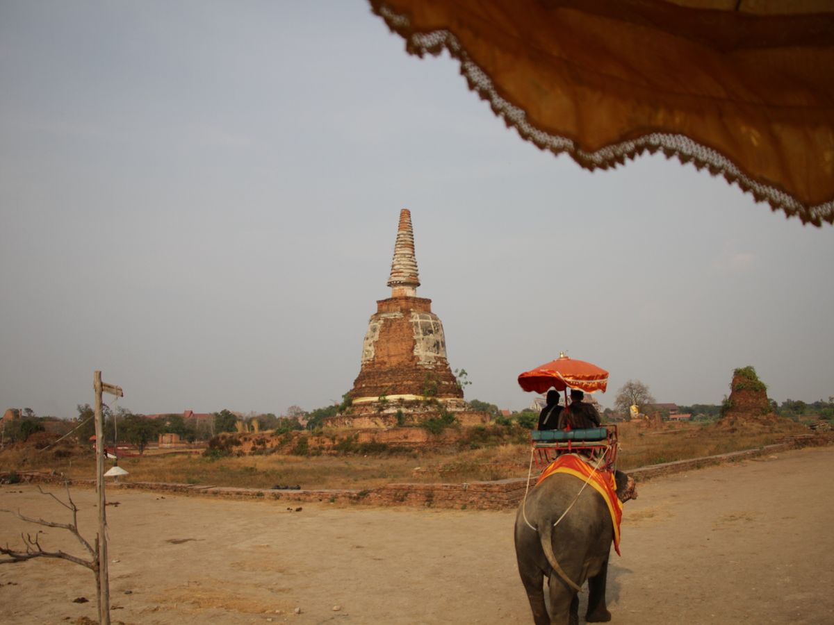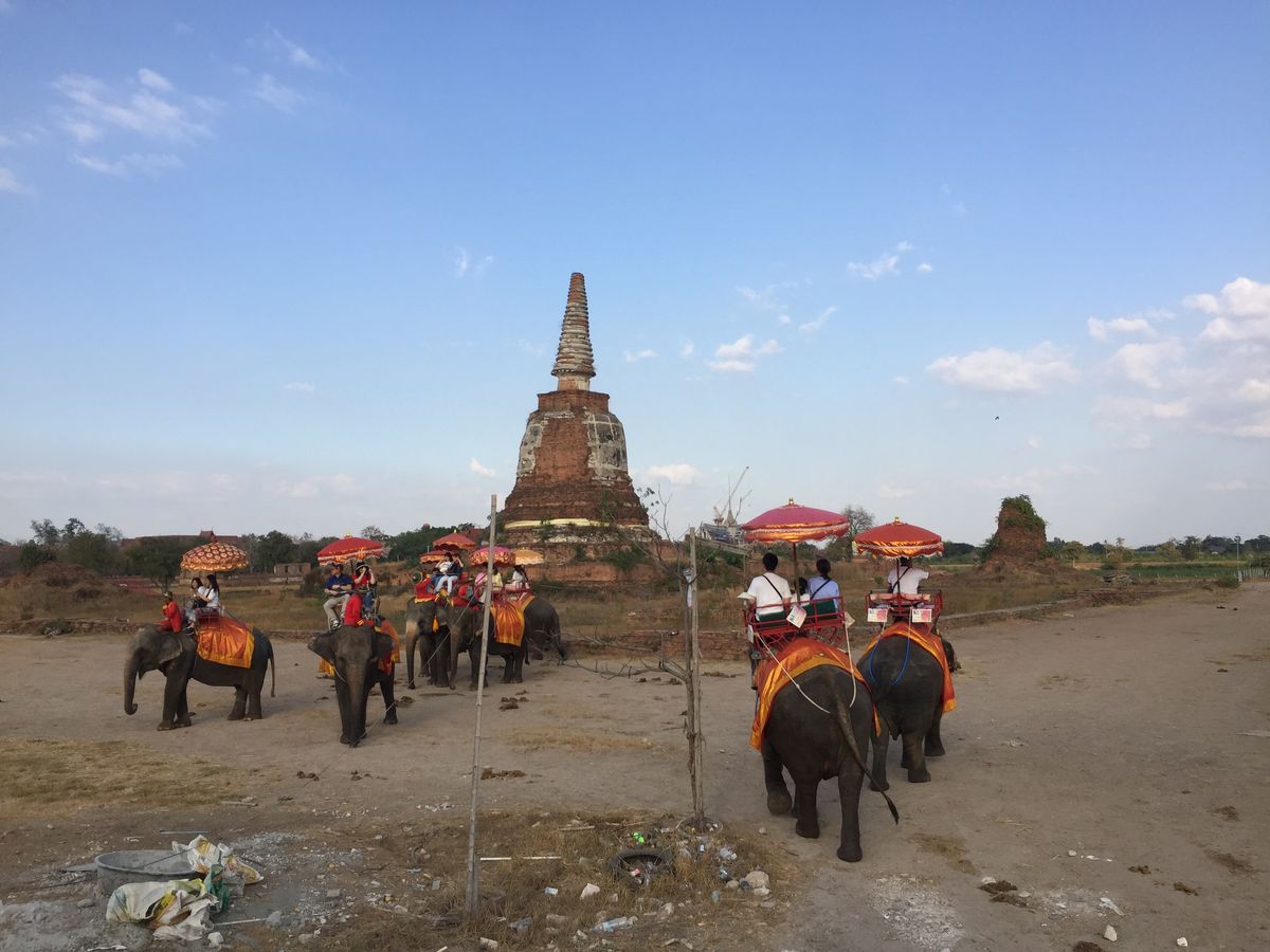 以前はアユタヤのみ行きましたが、象に乗れたり水上マーケット、メークロン線路市場にも行けるツアーがあったので参加しました