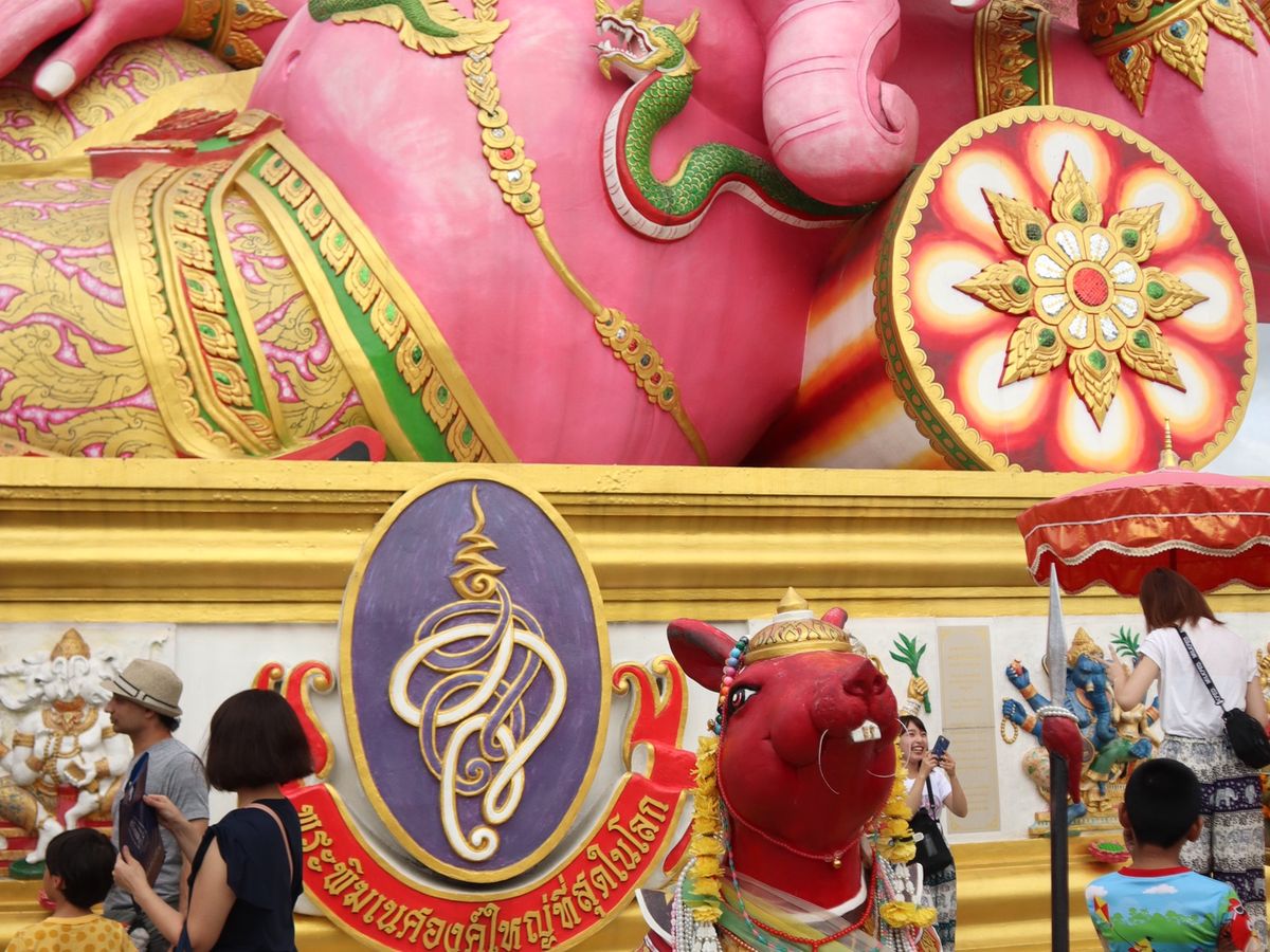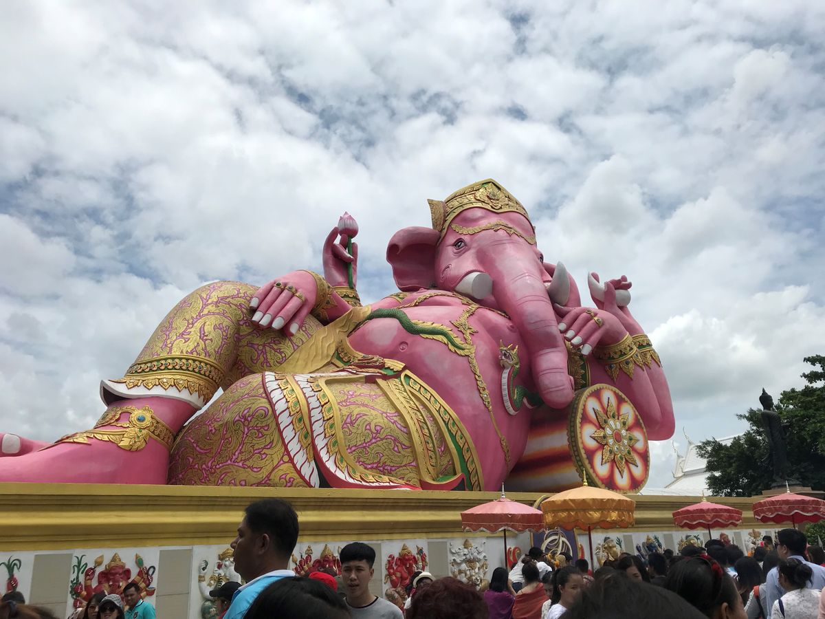 バンコク発のツアーを検討するなかで、複数のオプショナルツアーを選択すると、水上マーケットと象乗りが高確率で被る商品がほとんどですが、こちらのツアーは、定番のアユタヤ遺跡と象乗りのほか、ピンクガネーシャ、ワット・パクナムを回れるのでかなり期待していました。
