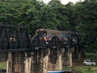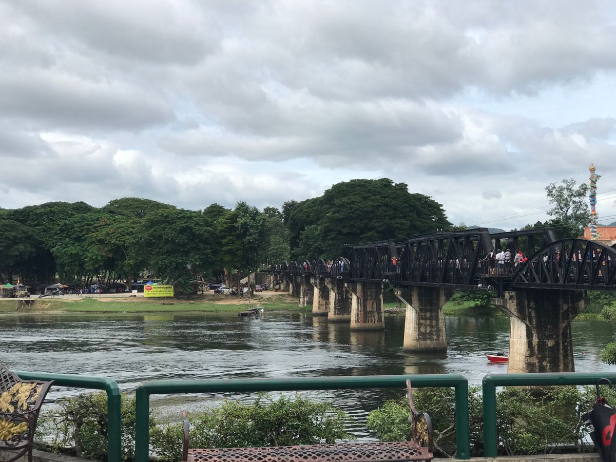 次はいよいよクワイ河にかかる鉄橋。往時とは異なり、今はすっかり観光名所となった鉄橋の上を様々な国から来られている人々と渡り、静かに流れるクワイ河を眺めて、列車に乗り込みました。