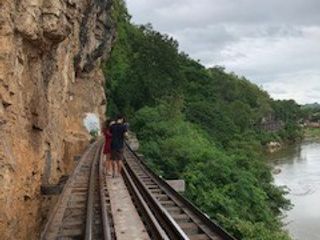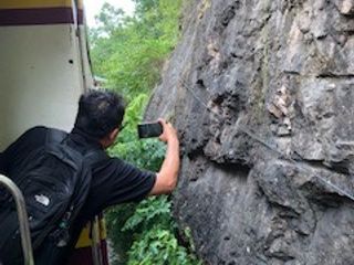 そして最後は泰緬鉄道の難所のひとつ、タムクラセーのアルヒル桟道橋。絶壁を掘り、寝泊まりする洞窟を作り絶壁に沿うように鉄道を作った労苦に思いをはせます。