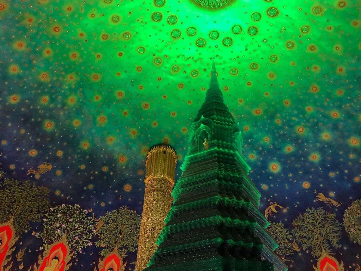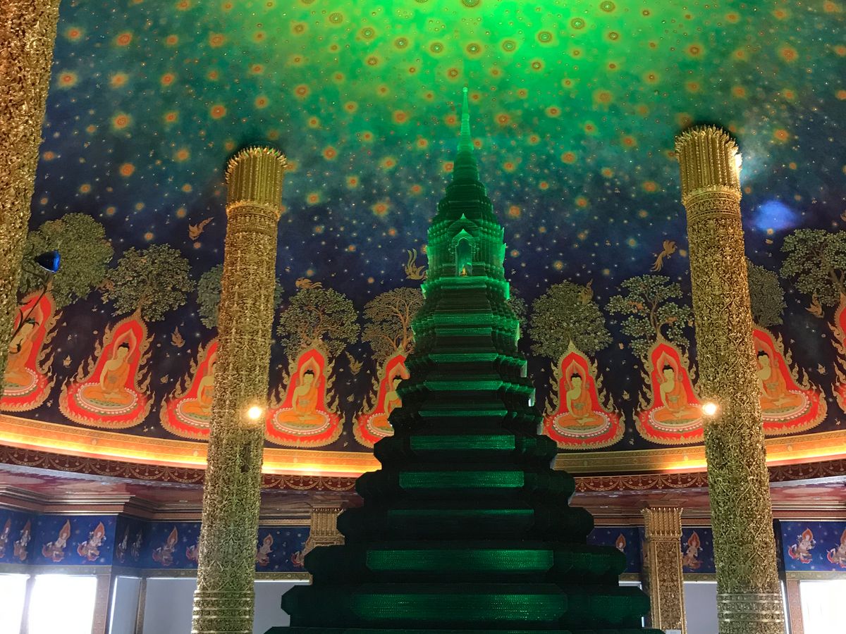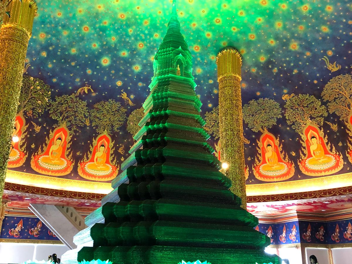 ワットパクナームは、4階までエレベーターは使えず階段で上がりました。エメラルドグリーンの幻想的な印象。しばらく、ボーッと眺めて不思議な世界にいるようでした。
