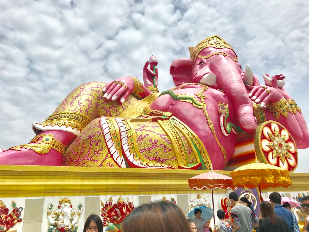 まず、ピンクガネーシャへ。ちょうどタイの仏教による祝日で、参拝客が多く賑わってました。ガイドさんの解説を聴きながら写真撮影&見学タイム。自由時間は十分時間がありました。