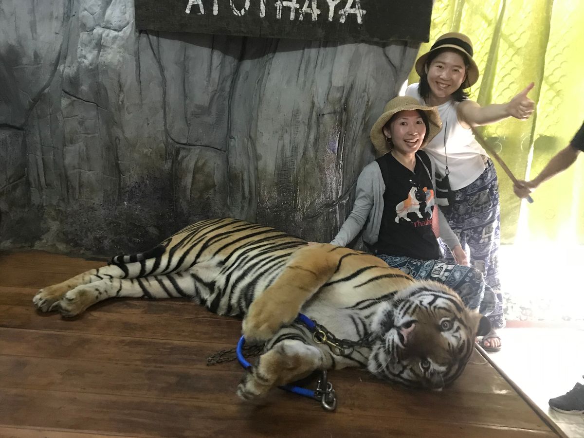 午後からは他のツアーからの方々と合流しアユタヤへ行きました。象に乗ったり虎を触ったりしながら暑い中の遺跡巡りでしたがガイドさんが日本語で説明してくださって、良かったです。