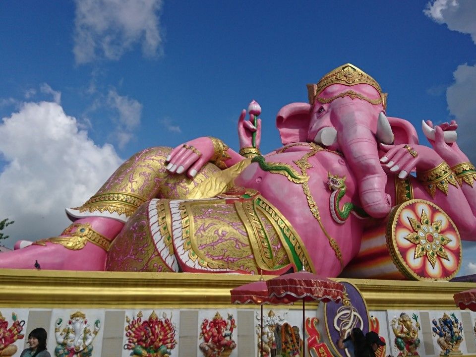 ワット・サマーン・ラッタナーラームまでは1時間半ぐらいかかりました。到着して、ガイドさんがそれぞれピンクガネーシャの前で写真を撮って下さり、お参りセットを購入し各自お参りをし、出発まで自由行動。怪しいキャラクターが沢山飾ってあり、薄っぺらい観光地の印象(笑)。個人的には笑えて、楽しめました。