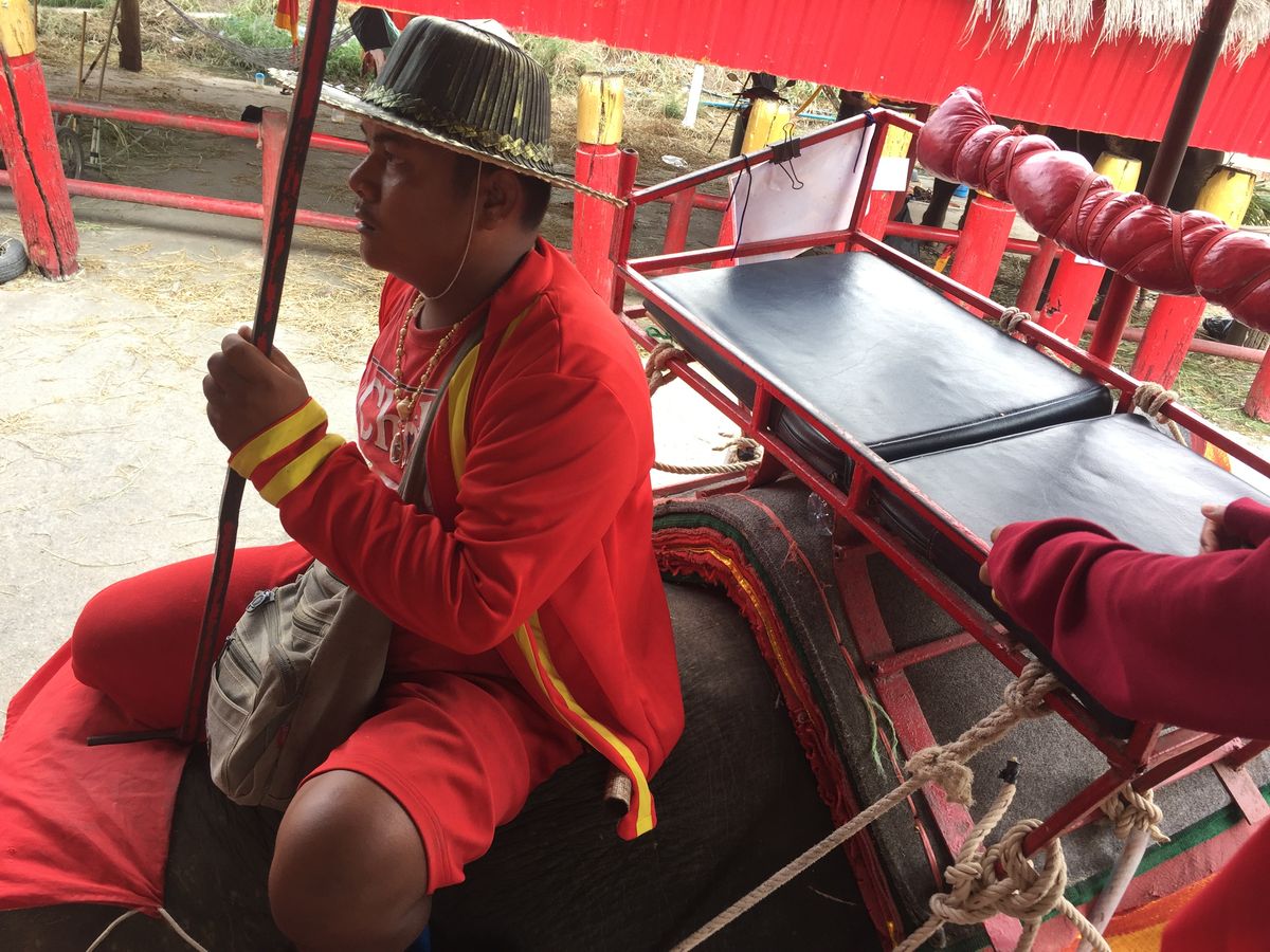 最初にボランティアが運営しているという、象のキャンプに行き象乗りをしました。別料金で1人300バーツを払い20分のライドでした。ツアー料金に含まれているのは短いコースみたいです。