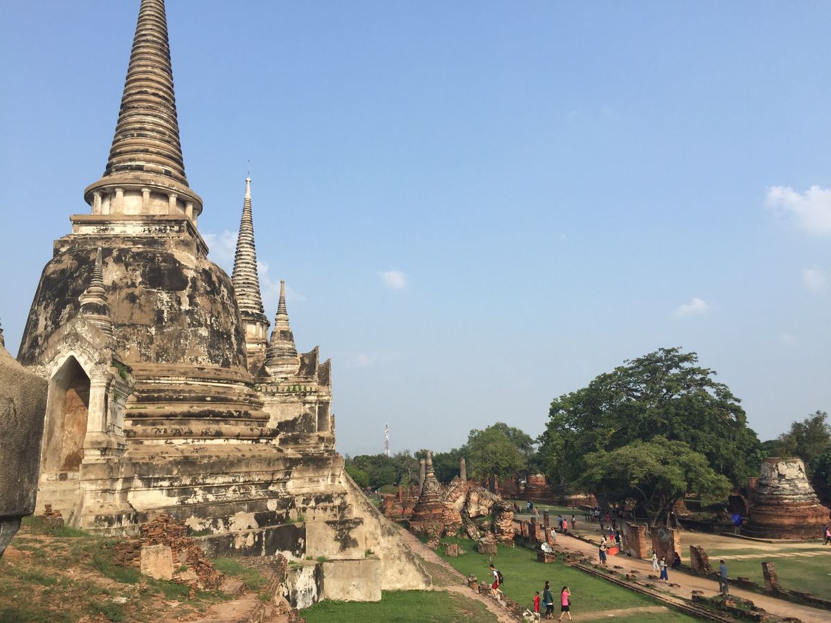 ガイドさんがすごく親切な人で楽しく観光できました。アユタヤの遺跡周辺は日陰が少ないので、ゆっくり歩いて見るのが大変でした。水上マーケットは写真で想像した感じで面白かったし、おまけの象のりがいい経験になりました。