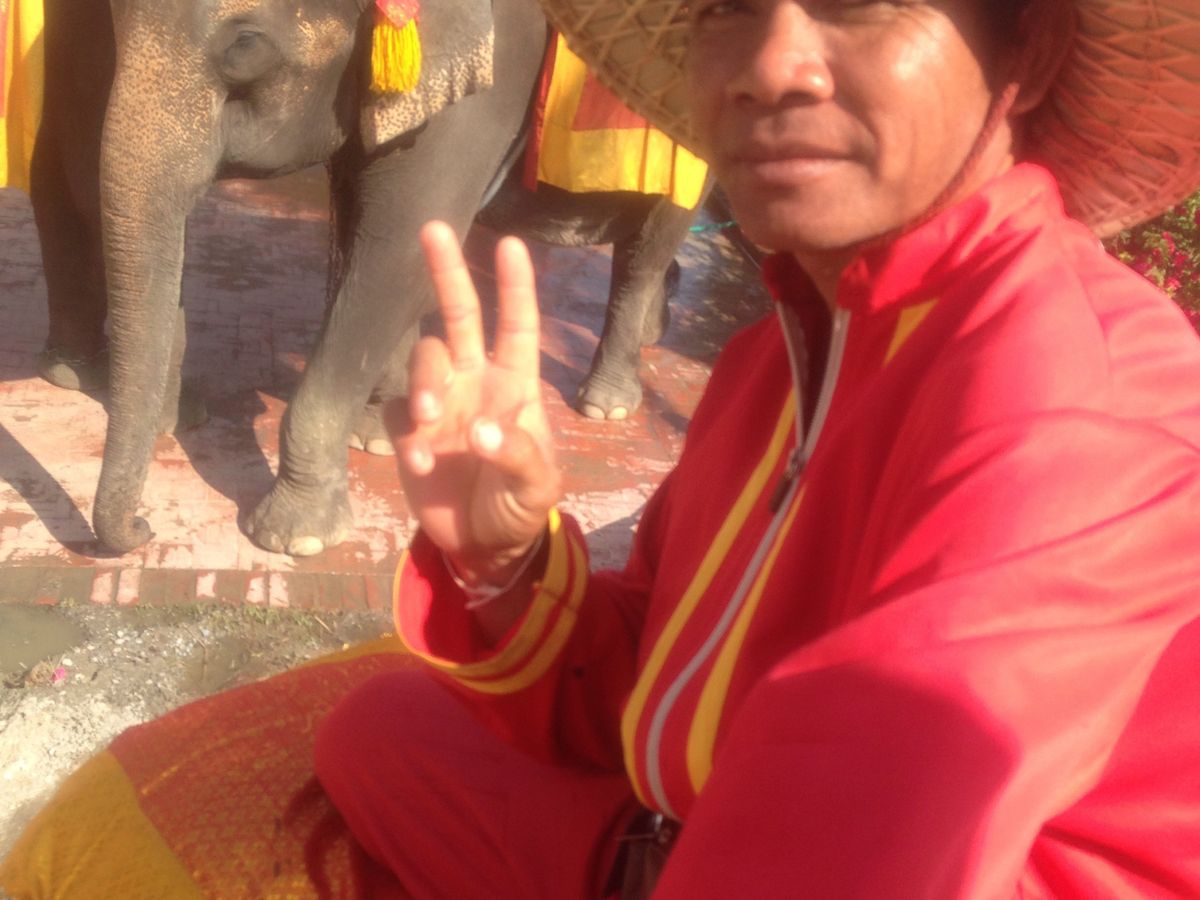 その後、アユタヤへ。ガイドさんが説明してくれます。効率良く回ってくださって、本当に満足いくツアーでした。ゾウに乗り、ゾウ使い?さんが写真をたくさん撮ってくれました(^^)