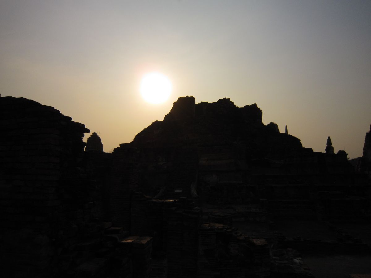 バンコクにある王宮や寺院のような華やかさはありませんが、夕暮れ色に染まるアユタヤがとても綺麗でした。