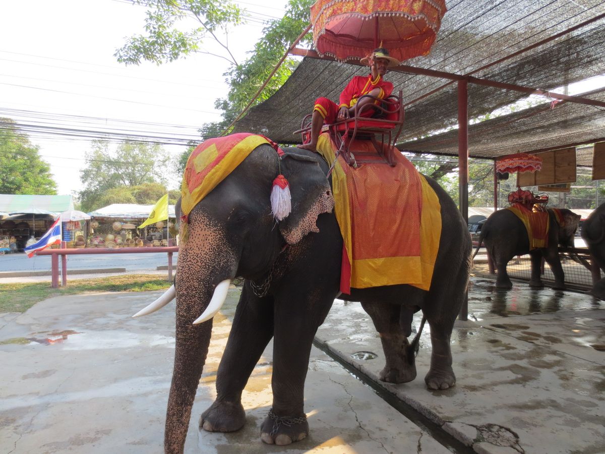 象乗り場も混雑していて、通常の場所は30分以上の待ちだったのですが、ガイドさんが気を利かせてくれて、別のアユタヤ水上マーケットの象乗り場へ変更してくれたため、無事に乗ることができました。