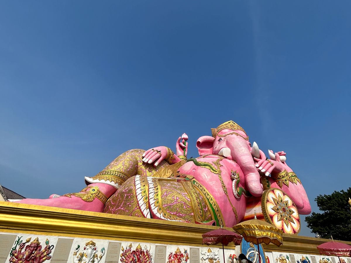ピンクガネーシャ、ワットパクナーム、アユタヤ遺跡巡り、象乗り体験の1日ツアーに参加しました。
