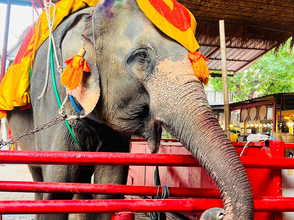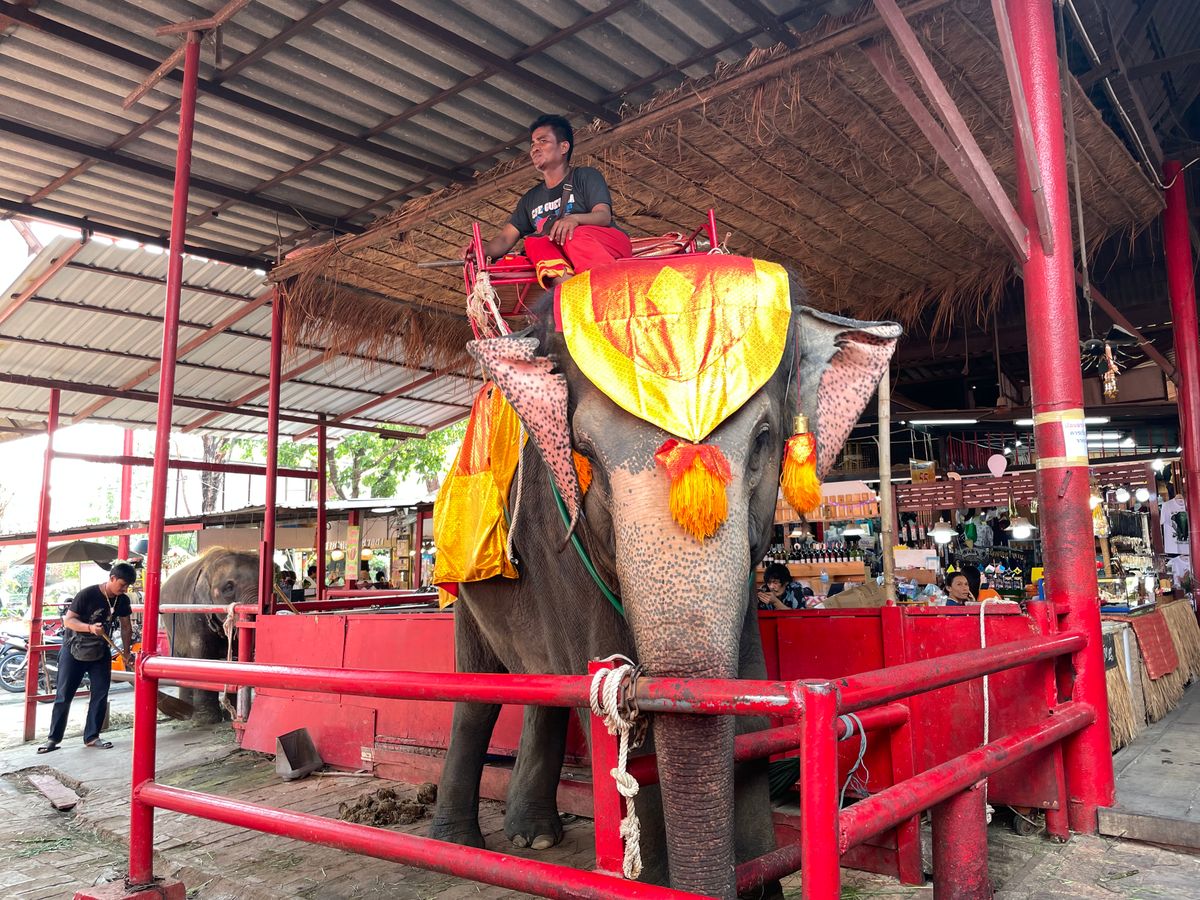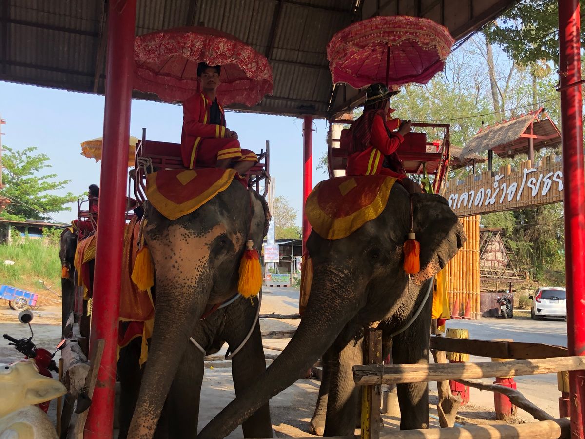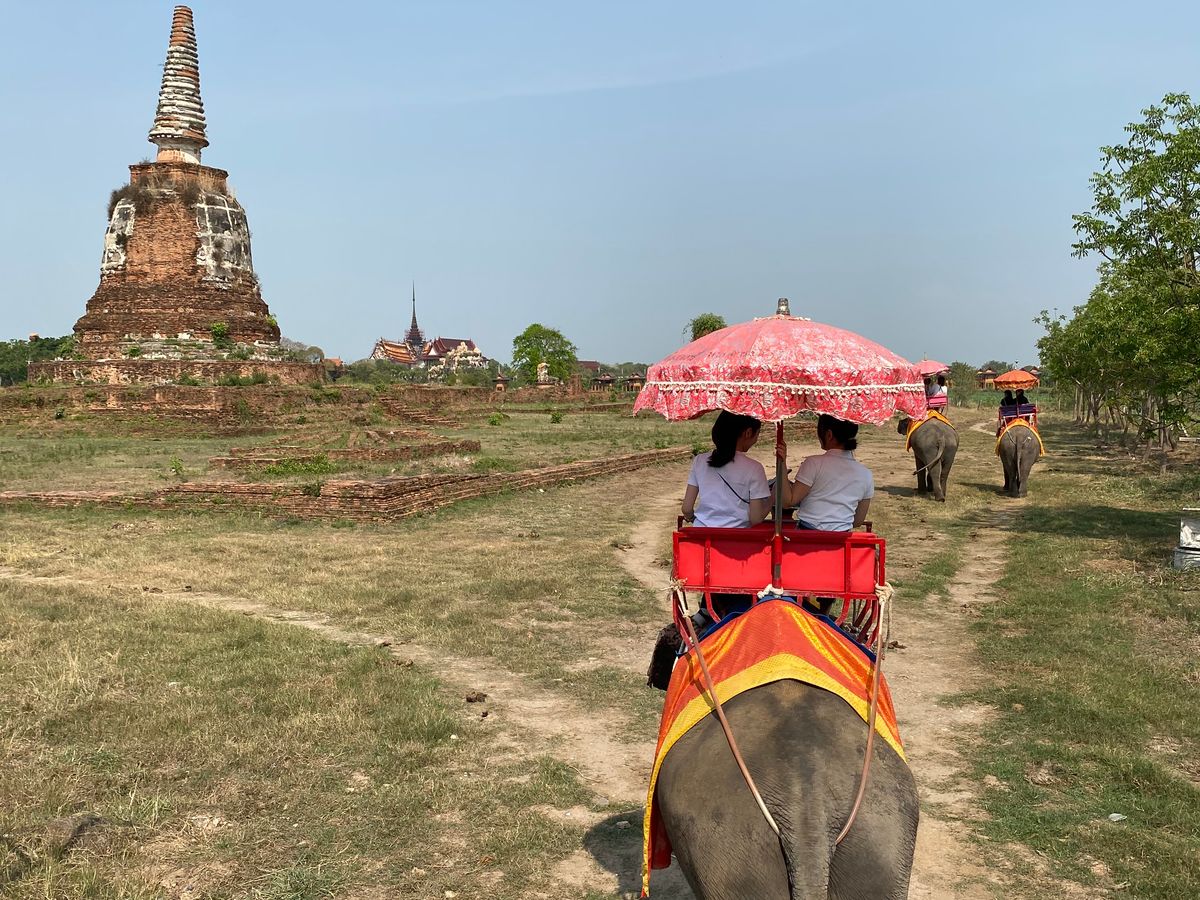 アユタヤ遺跡、メークロン線路市場、水上マーケット、象乗りのツアーに参加しました。