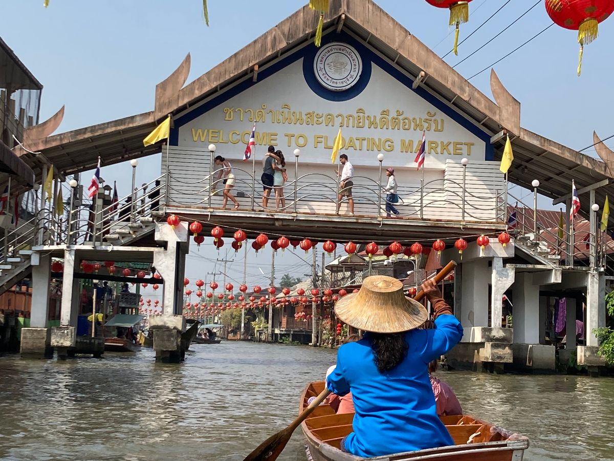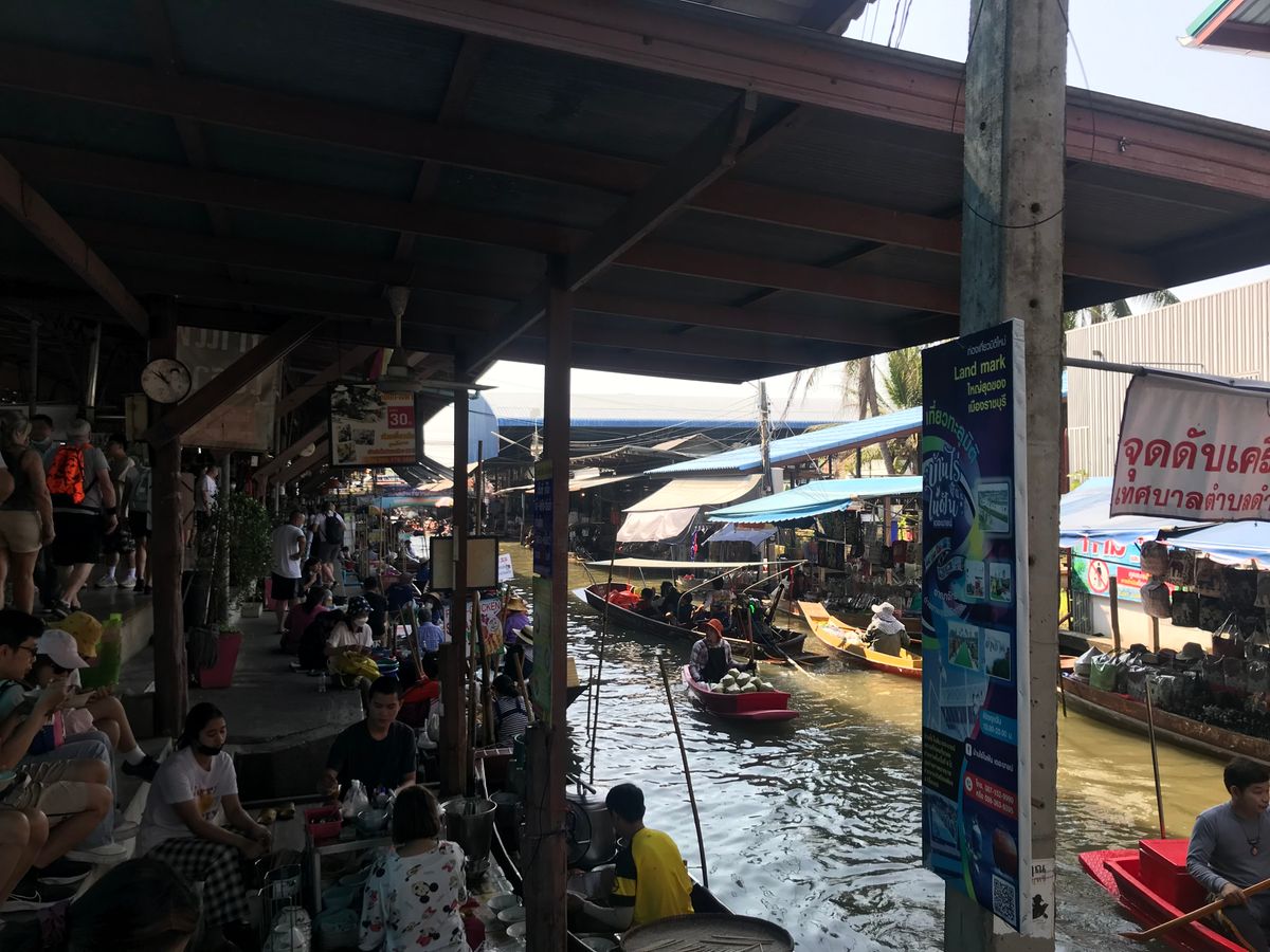 水上マーケットでは北京ボート(有料)に乗ってココナッツアイスを食べるのがおすすめです
