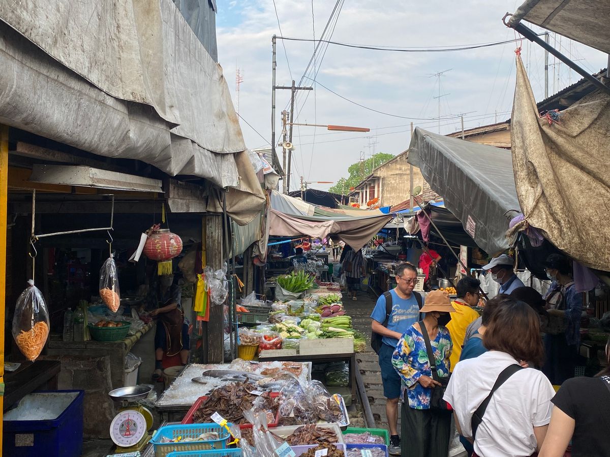 市場内でも迷ったのか、他の会社のガイドさんにタイ語で順路をきいている始末。