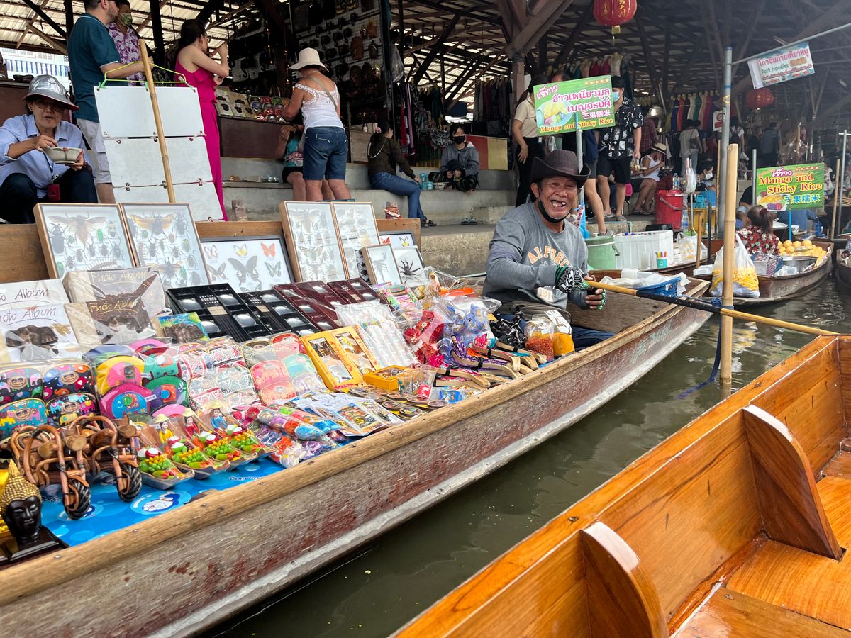トレインマーケットの方が物は安いと思いますが、船に乗っての買い物は中々経験出来ないので、ツアー参加者は水上マーケットでの買い物も是非やってもらいたいですね。