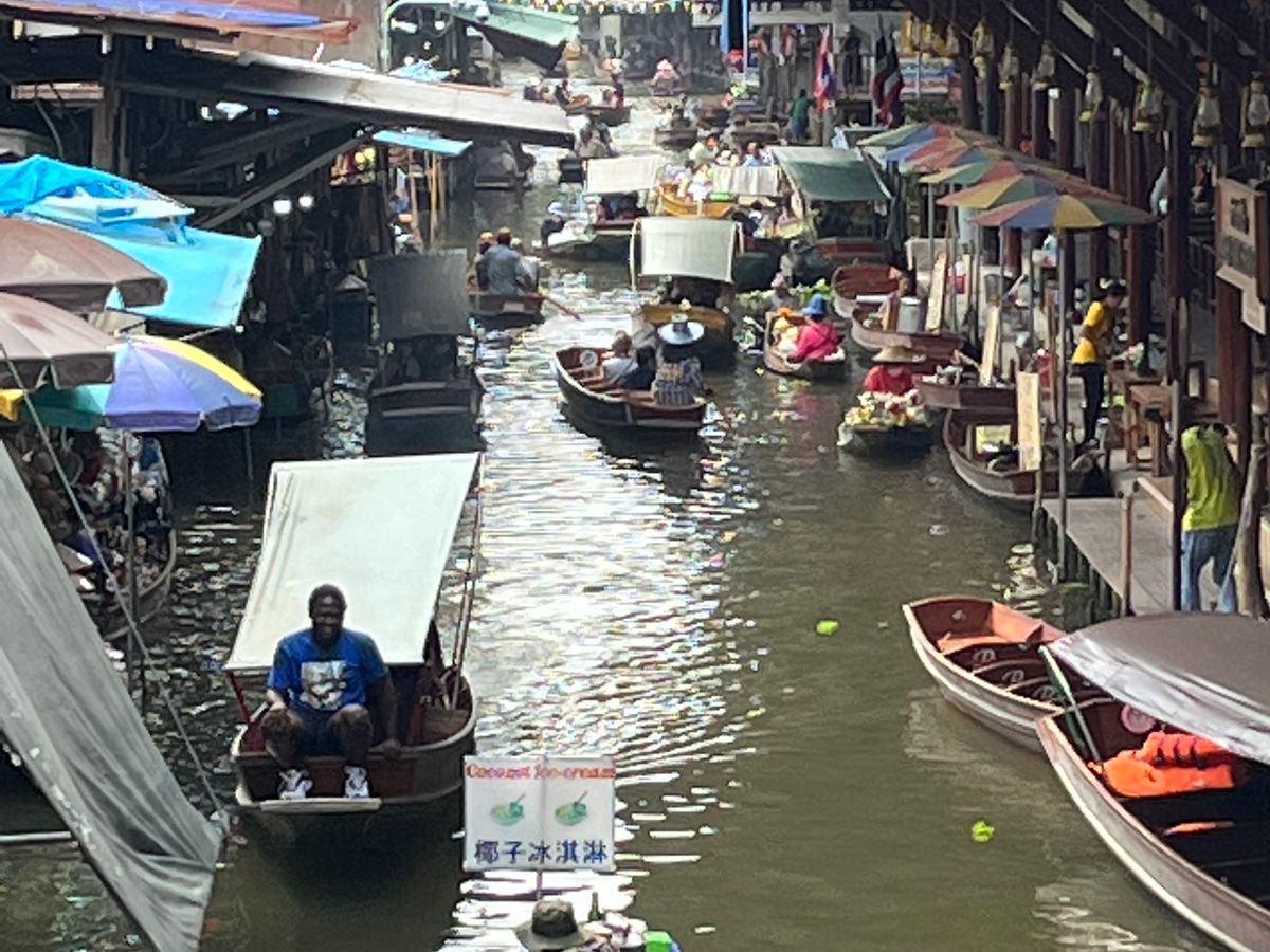 丁度お祭りをやっていて、水上マーケットが凄い混んでいて驚きました。面白かったです!