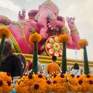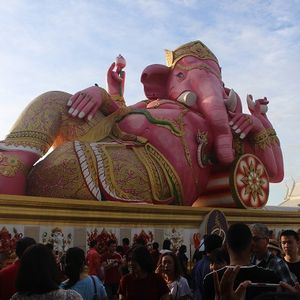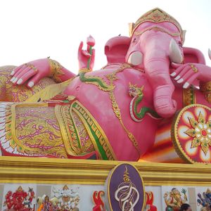 ピンクガネーシャまでは、移動に片道2時間かかります。寝ていればすぐですが、まだかまだかと言っている方もいらっしゃったので、移動時間が苦痛な方はおすすめしません。でも、ピンクガネーシャ自体は本当に大きくて、ネズミに願い事も会えたので良かったです!また、ピンクガネーシャ以外にも、巨大な像が2〜3個あったのでそれも見れます。ピンクガネーシャ関連のお土産は、小さな像(親指サイズぐらい)で800〜600バーツとボールペン25バーツ、ペンダントトップ200〜300バーツぐらいしかなかったのが残念でした。