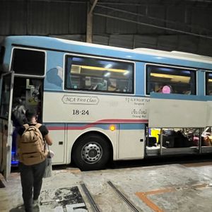 21:45発のバスでしたが、10分前の21:35にもチェンマイ行きのファーストクラスバスが運行されているので、チェックインが始まったのが出発10分前の21:35(前のバスが出発後)でした。あまり早く行く必要はないのかなと思いますが、バスターミナルが市内中心部から少し離れているのと、夕方は渋滞が凄いので、余裕を持ってバスターミナルに行くほうが無難です。