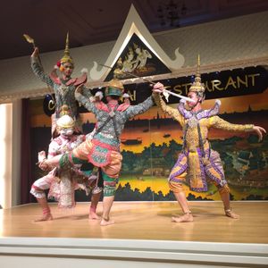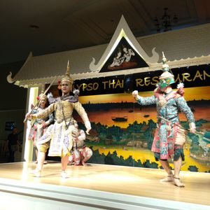 今回の初タイ旅行で楽しみにしていた古典舞踊観賞、事前に踊りのストーリーを調べて当日の観賞に臨んだ甲斐もあり、役柄や内容がわかってとても面白かったです。華やかな衣装と優雅な踊りは必見です。ディナーも春巻きやグリーンカレー、トムヤムクンなどタイの代表的な料理をいただきました。味も量もちょうど良かったです。食事とショーの後はショッピングも楽しめ、帰りは夜景を見ながら無料シャトルボートに乗り、最高に充実したバンコクの初日でした。