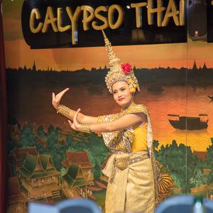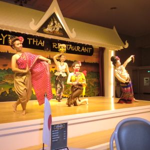 タイ舞踊を初めて見ました、きれいでニュウーハーフの人もいて、楽しかったです。ご飯も、日本人でも食べれる内容でした。外国の方もいましたが、この日は日本人の団体さんが多くいました