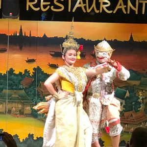 子連れだった為、早めの時間のタイ舞踊が見られるチケットを探していて、このオプションに出会いました(他のタイ舞踊が見られる場所はすべて20時過ぎからで、子連れには少し遅いかなという感じでした)。他の方のレビューに場所が分かりにくいとあったので少し早めに行って場所を確認するつもりでしたが、駐車場から歩いていくとかなり分かりやすい位置にありました(おかまショーなどがある場所と同じと思います)。ディナーはオーソドックスなタイ料理(トムヤムクン、グリーンカレー、サテ等)ですが予算に見合った内容でした(飲み物は別料金なので頼んだ分別途現地で支払う必要あります)。タイ舞踊についてはもう少しストーリーを確認してから行けばもう少し楽しめたかなとの後悔は残ったものの、タイの各地方の踊りあり、古典的なストーリーあり、写真撮影ありの大満足な内容でした。
