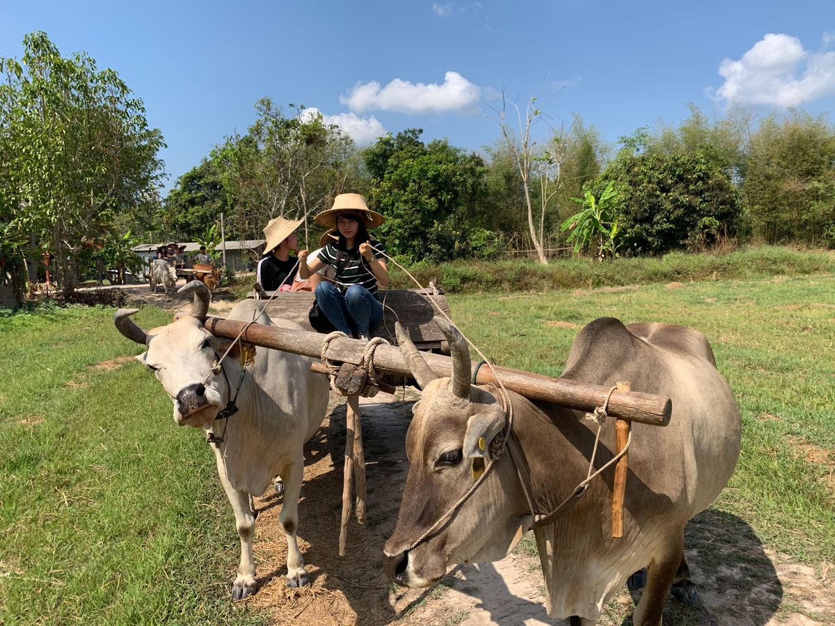 牛車では乗ることができる他に、バナナを牛にあげることができたりと触れ合うこともできました。牛車の方も、写真を率先して撮っていただけ、とても感謝しています。