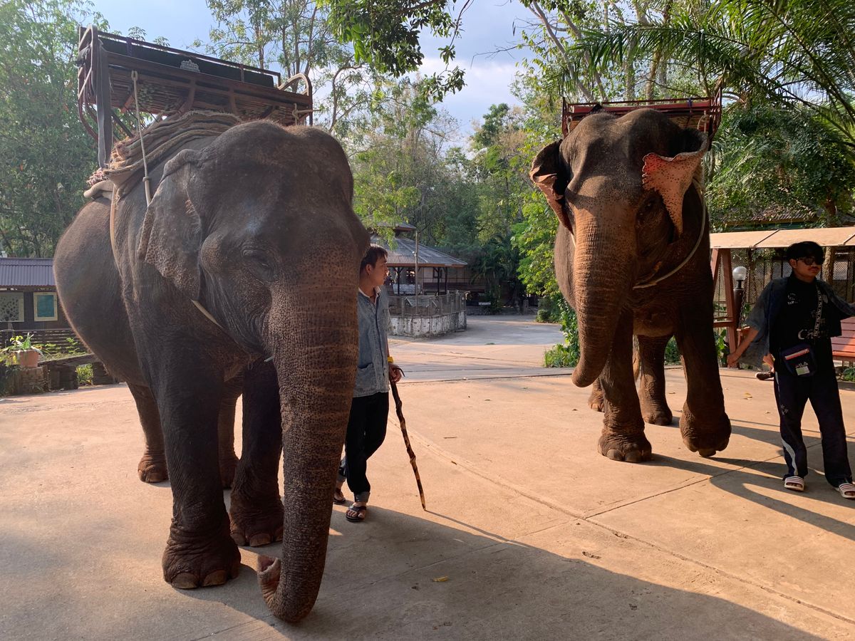 ツアーガイドの人柄・ノリはかなり良く、農場での農家や水牛とのふれあいや牛車での移動、ソムタム作り、本格的なタイ料理、ゾウ乗りなどどれも大満足な内容で、両親もとても喜んでいました。特にゾウ乗りでは、後半はゾウ使いがゾウから離れたところでゾウを誘導するため、自分たちがゾウ使いになった気分になることができ、その様子を写真にも収めてくれるため、大変貴重な経験となりました。ゾウとあんなに近くでたっぷり触れ合える経験は動物園では絶対できません。カオヤイのトレッキング時間はそこまで長くなかったため、次回はカオヤイにキャンプしに行きたいと思っています。