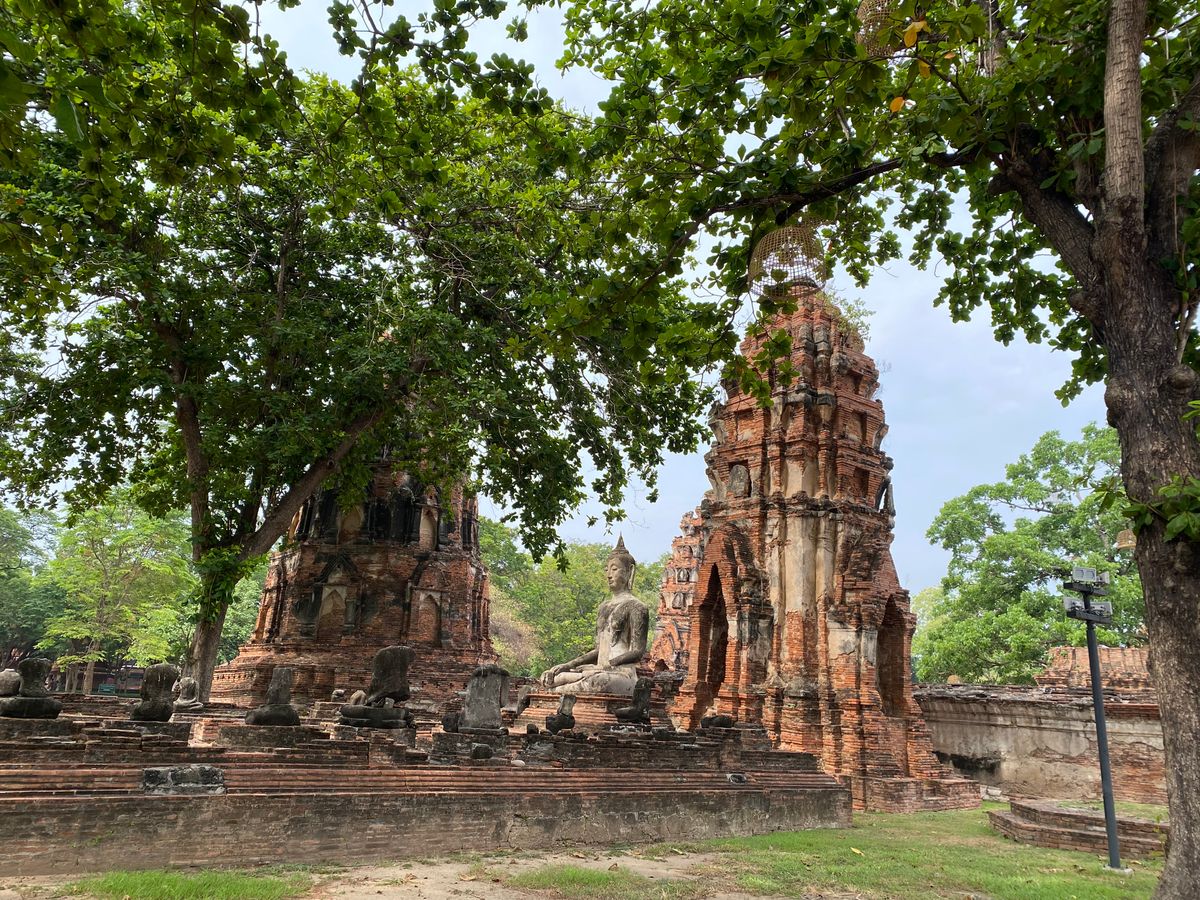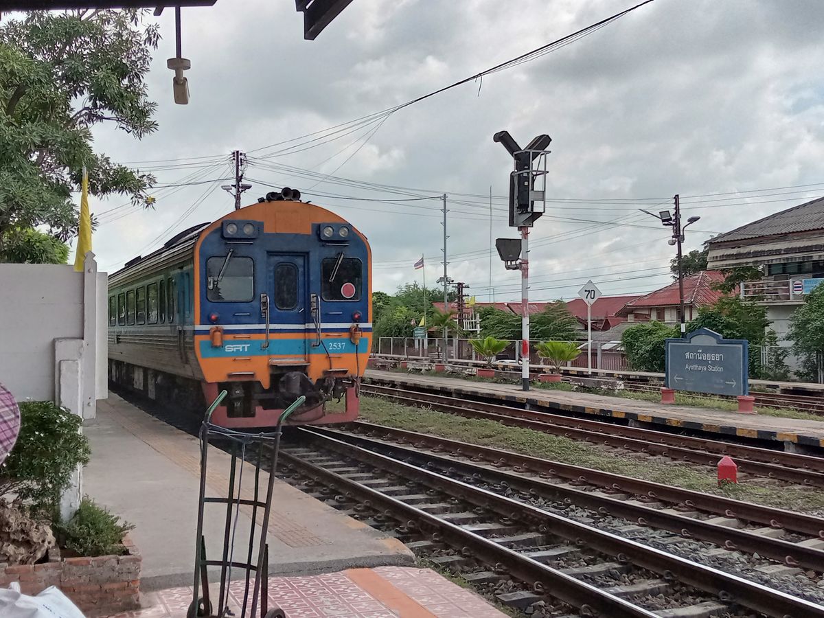 往復のタイ国鉄は想像していたよりも近代的でしたが、空調が効きすぎて冷蔵庫のようでした。トゥクトゥクでのアユタヤ市内の移動は景色が良く見れて、その土地の匂いも感じられ良かったです。各遺跡ではガイドさんが流暢な日本語で遺跡の成り立ちを説明してくれます。写真もたくさん撮ってもらえて嬉しかったです。途中スコールがありましたが、10分ほど雨宿りしたら止みました。