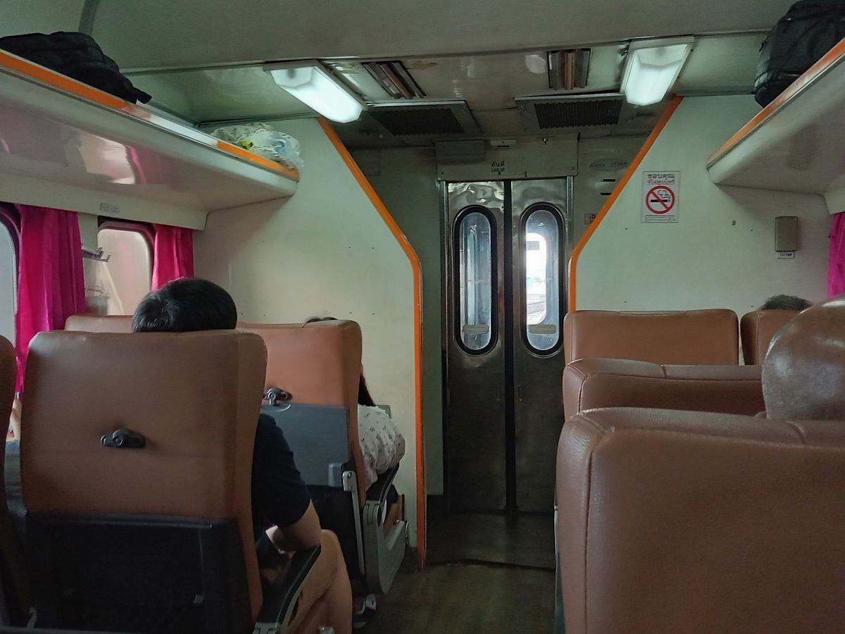 タイ国鉄の冷房付き車両はとても寒いので長袖の上着必須です。