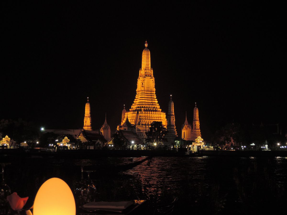 COVID-19前にタイ人の同僚と訪問。ワットアルンのライトアップと