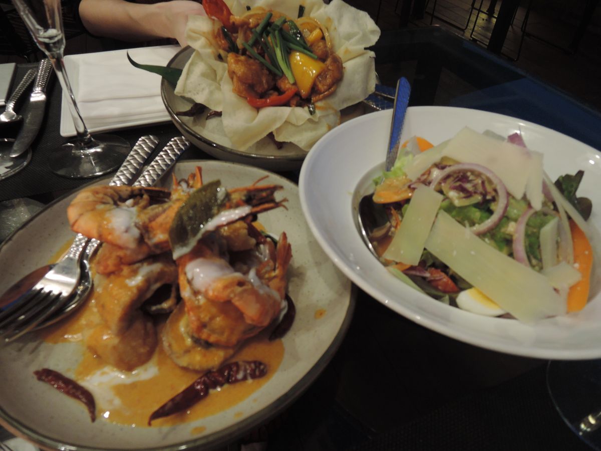 セット料理以外にも美味しそうなメニューがあると聞きつけ、座席のみの予約にしました。カニカレーはもちろん、日本では数千円もするような大きなエビの塩焼きなど、とても満足です!また、リピートします!!!
