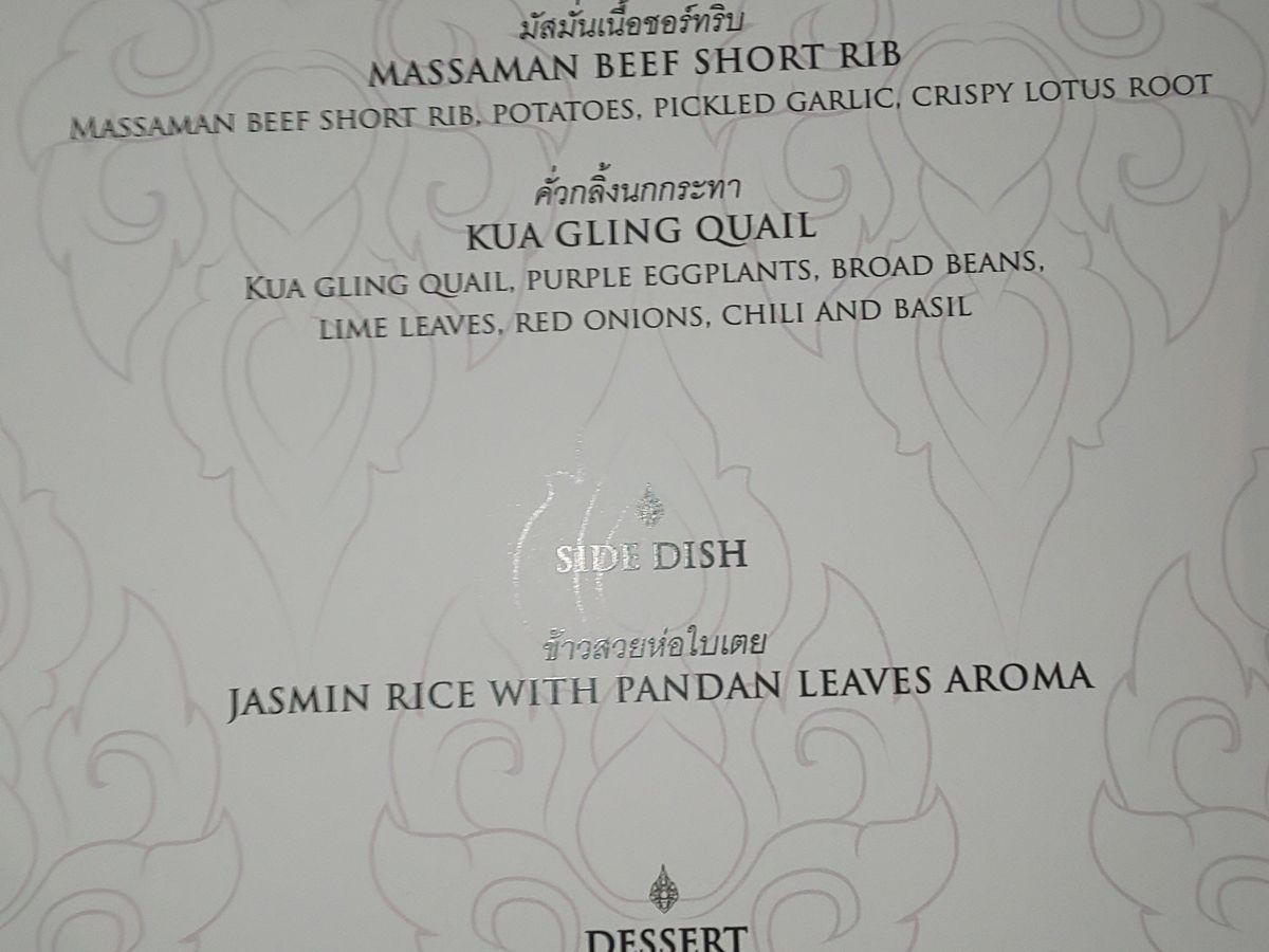 特別料理価格でしたが、タイのホテルの大晦日に良くあるガラディナーが、値段は高く、中味はバッフェタイプのことがあるので、それに較べると、値段相応かと思います。