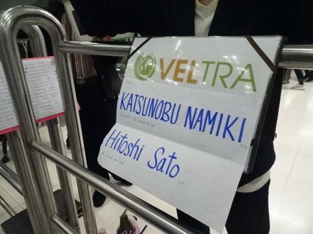 VELTRAマークの下に、小生の名前を見たときは、ほっとしました。担当者が運転手と携帯で連絡を取って、すぐ近く(7~80m)に停車した場所まで案内してくれました。