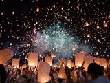 ずっと行きたいと思っていたコムローイ祭りに行けて本当に良かったです。写真や映像で見るよりも、実際に行って体験しながら見た方が圧巻で感動的でした。日本人の参加者が多く、ガイドさんもみんな親切で安心して参加することができました。トイレが心配でしたが、とてもきれいでびっくりしました。コムローイを上げるのはちょっと大変でしたが、ガイドさんや現地のスタッフの方々が手伝ってくれたので無事に上げることができました。前の方で後ろを振り返って見るのもいいですが、真ん中〜後ろから見た方がランタンが上がる様子も花火も見れて圧巻だと思います。たくさんのランタンが上がっていくとても綺麗な光景を見れたことは一生の思い出です!