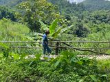 ゾウに乗って付近を一周し、川も渡った。エサ(バナナや竹)を100バーツで購入。ゾウはちゃんと鼻で受け取ってくれる。チップの紙幣も鼻で受け取る。ショーの後で、ゾウの鼻を私の首に巻き付けてくれて、一緒に写真を撮った。