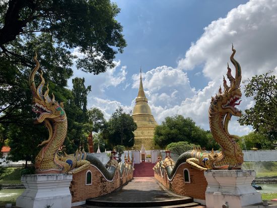 北部タイで最も美しい寺院と言われ、入口のアーチ門ではインド神話に起源をもつナーガが出迎えます。丑年生まれの人が参拝するとよりご利益があるんだとか。