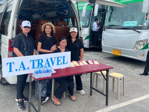 ・バスには「TA.TRAVEL」と書かれた紙を貼付しております。