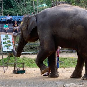 象のお絵かきはテレビで見ましたが、それが目の前で見れて感激でした。書いた絵も間近で見ることもでき、また象さんが鼻で帽子をかぶせてくれたりと良かったです。チップは鼻で取りに来てくれました。それからいっぱいの象のサーサッカーも面白かったです。