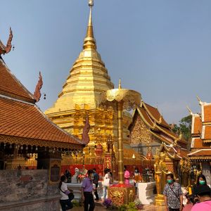 プライベートチャーターは自分たちのペースでゆっくりじっくり観光できます。チェンマイはちょうどお祭りでどこに行っても華やかな飾り付けがしてあり、普段は見られない寺院の様子を見ることができました。