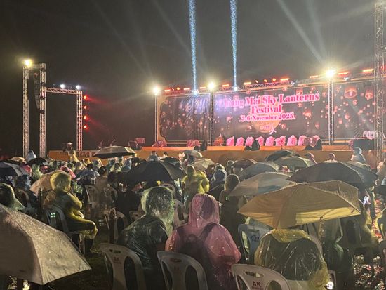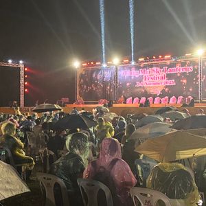 土砂降りの雨の中、1時間程待った後のランタン上げとなり、喜びもひとしおでした。