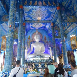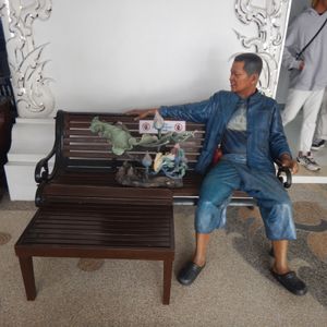 白の寺院、青の寺院、ゴールデントライアングルとシンハーパークを周るツアーは、ここだけでしたので参加しました。当日、私たち2人の参加のみでしたので、プライベートツアーのようでした。ガイドさんの説明もわかりやすく、白の寺院では、たまたまおられた寺院の作成者を教えていただきました。