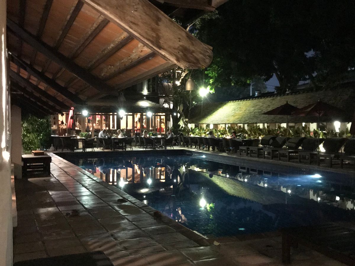 プチホテルのプールを挟んでのこじんまりとしたレストランです。