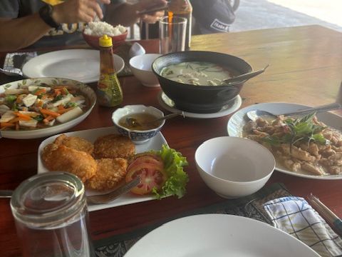 お昼はローカルの食堂でスコータイ名物の麺料理を食べたり、道中でスイカやナツメを買って食べたり、ちょっとした遠足に行ったような楽しい旅になりました。また、ドライバーさんの運転は安心安全で、長い道中も心配することはありませんでした。