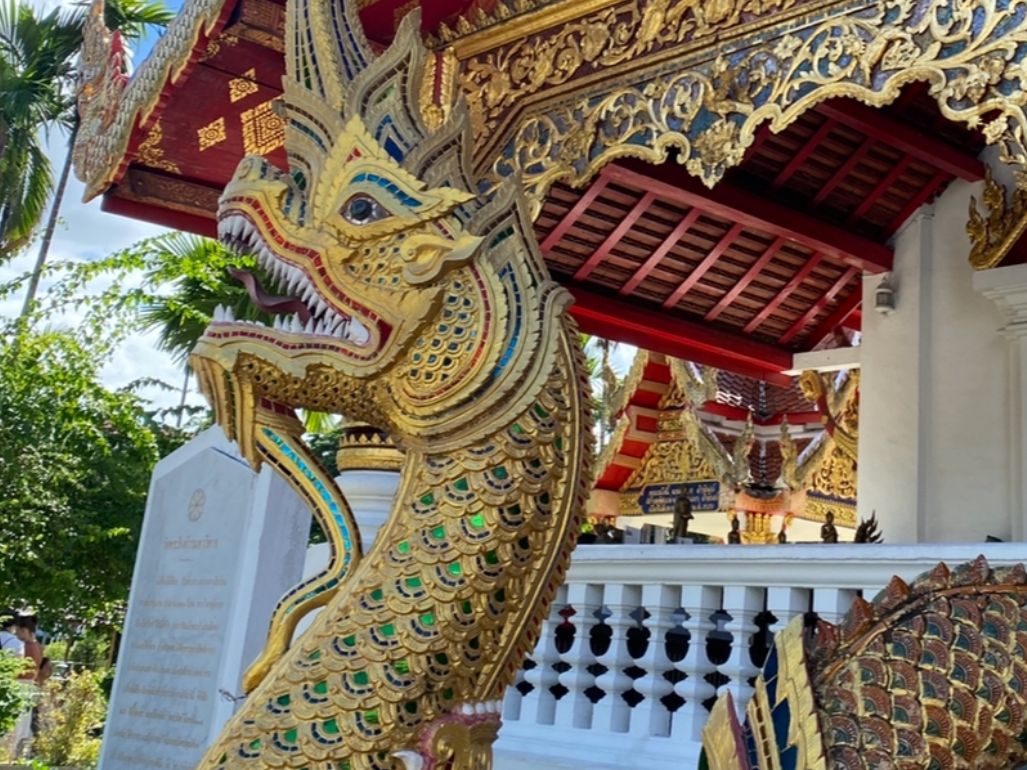 ワットプラシンは辰の寺と言われており、辰年生まれの私にとっては更にパワースポットになるとの事でガイドのユイさんにタイ式のお祈りの仕方を習ってお祈りしてきました。