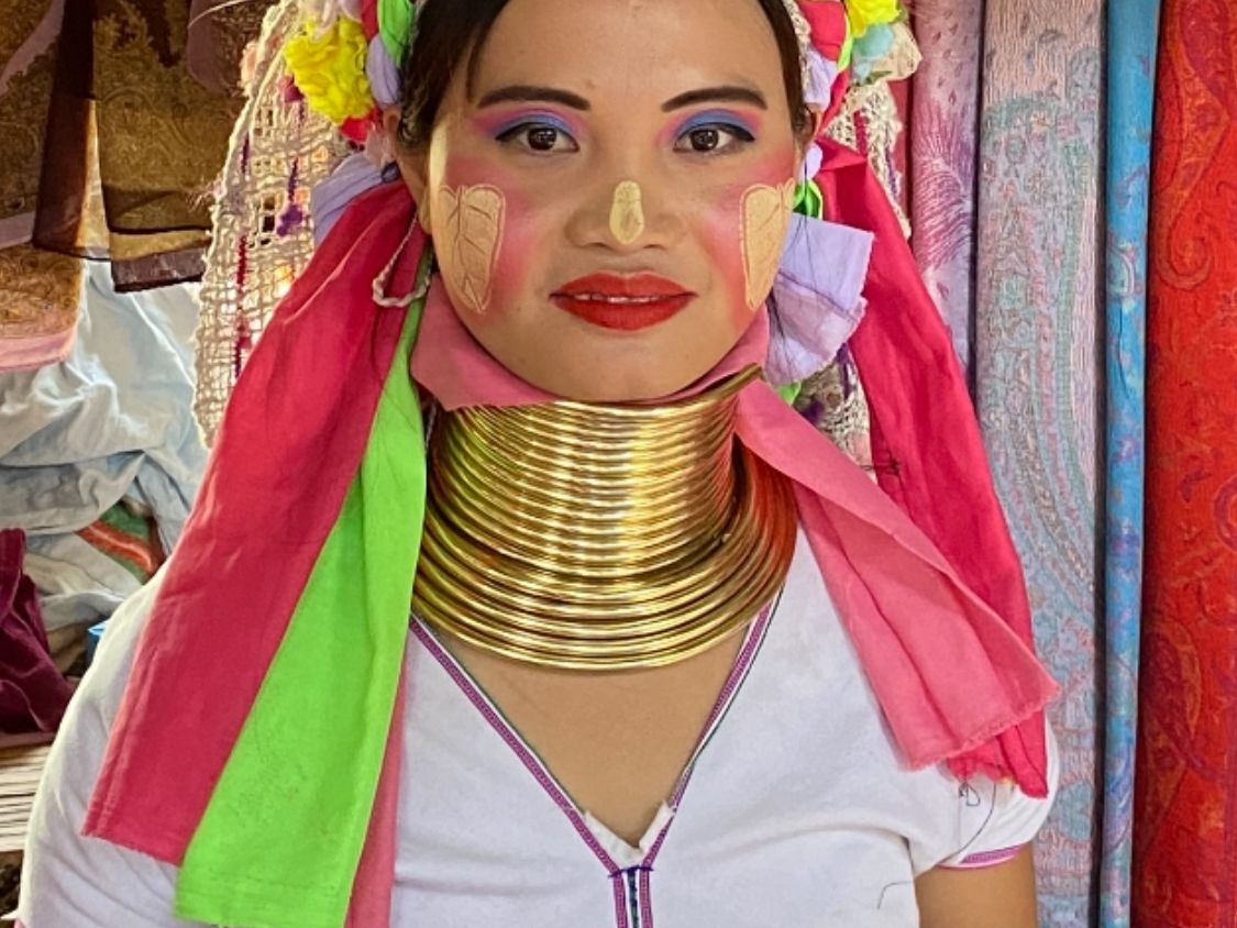 首長族の方々の生活スタイルを見学でき、また首の輪っかを付けて一緒に撮影することができます。