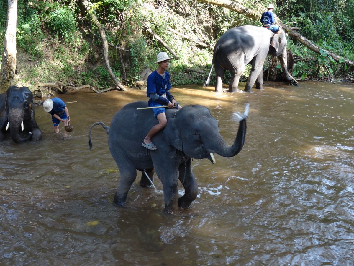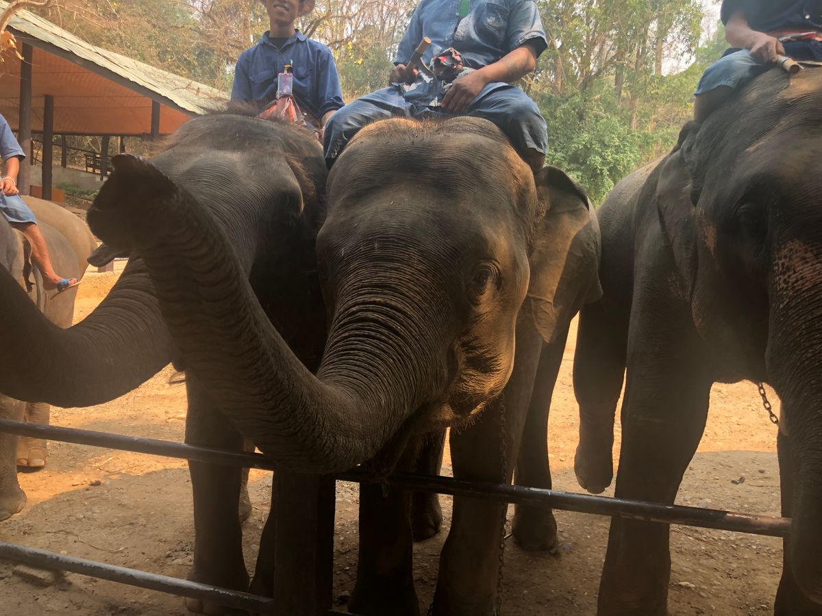 8:30にホテルを出発して、メーサエレファントキャンプでエサやり、ショー観覧と象に乗って約30分のトレッキングをしました。